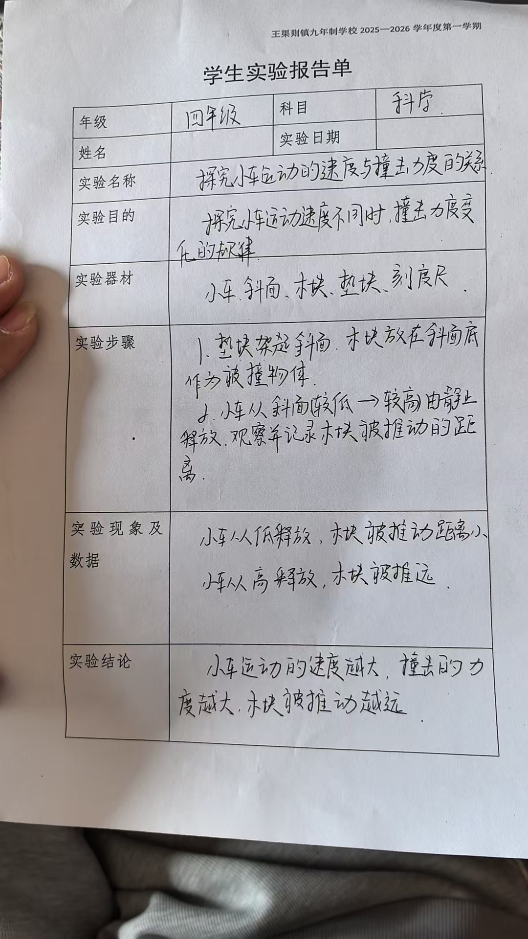 探究小车运动的速度与撞击力量的关系