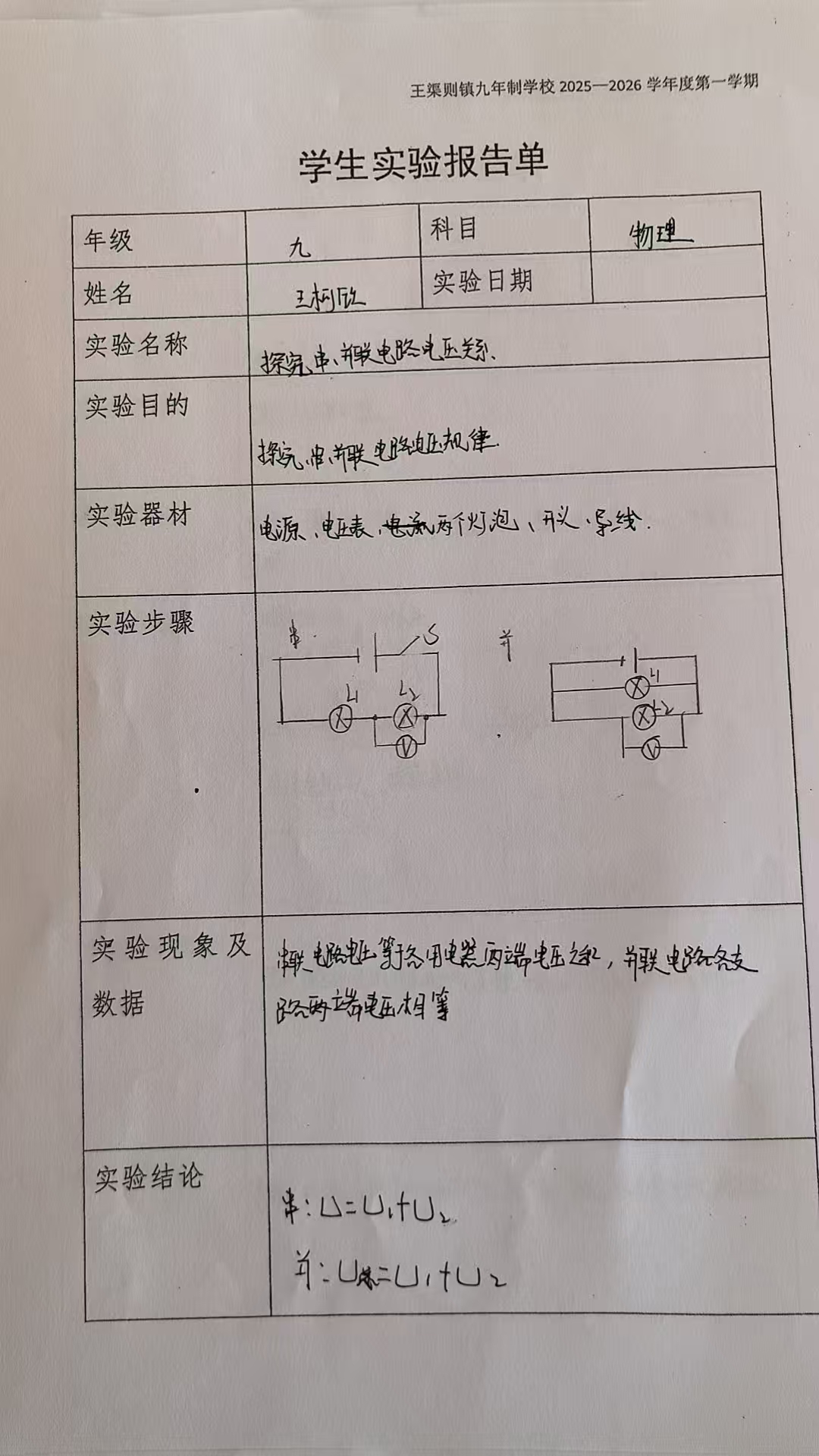 探究:串联、并联电路中电压的关系