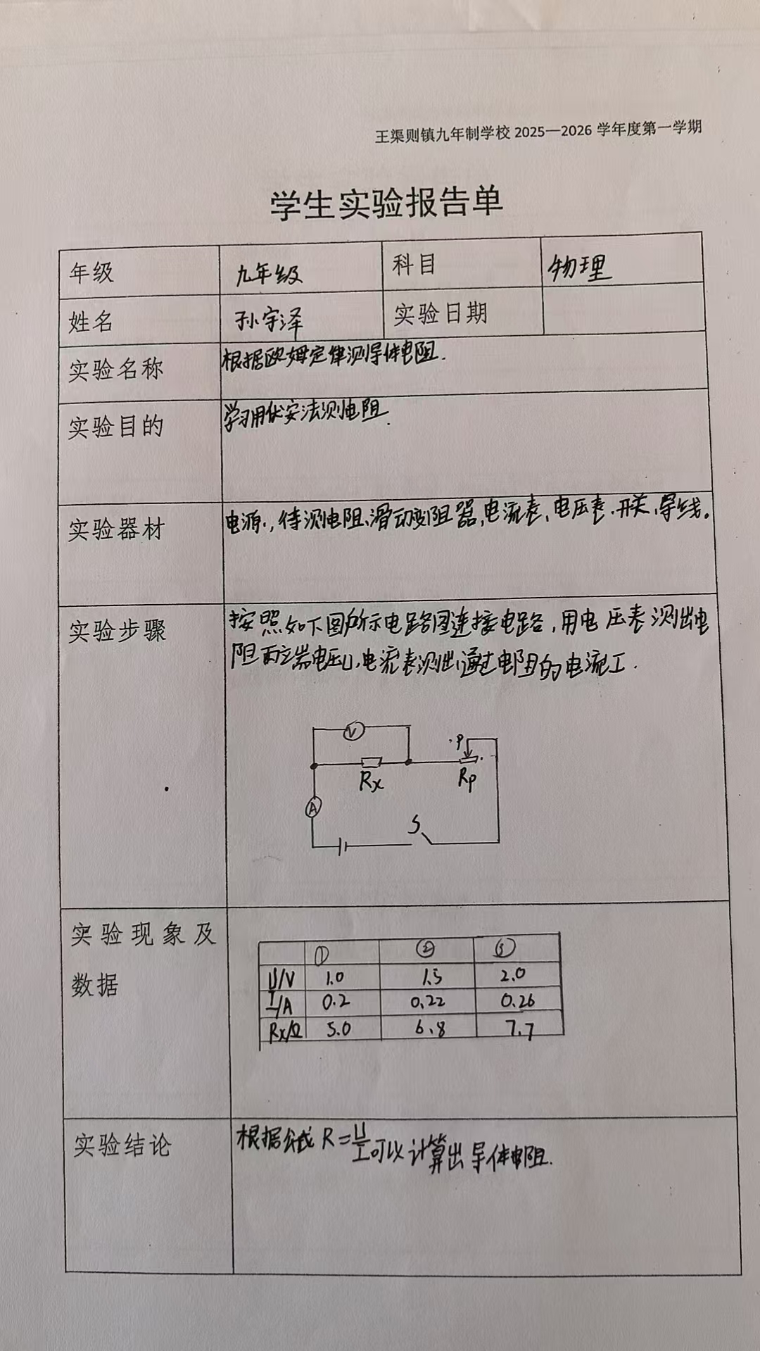 根据欧姆定律测导体的电阻