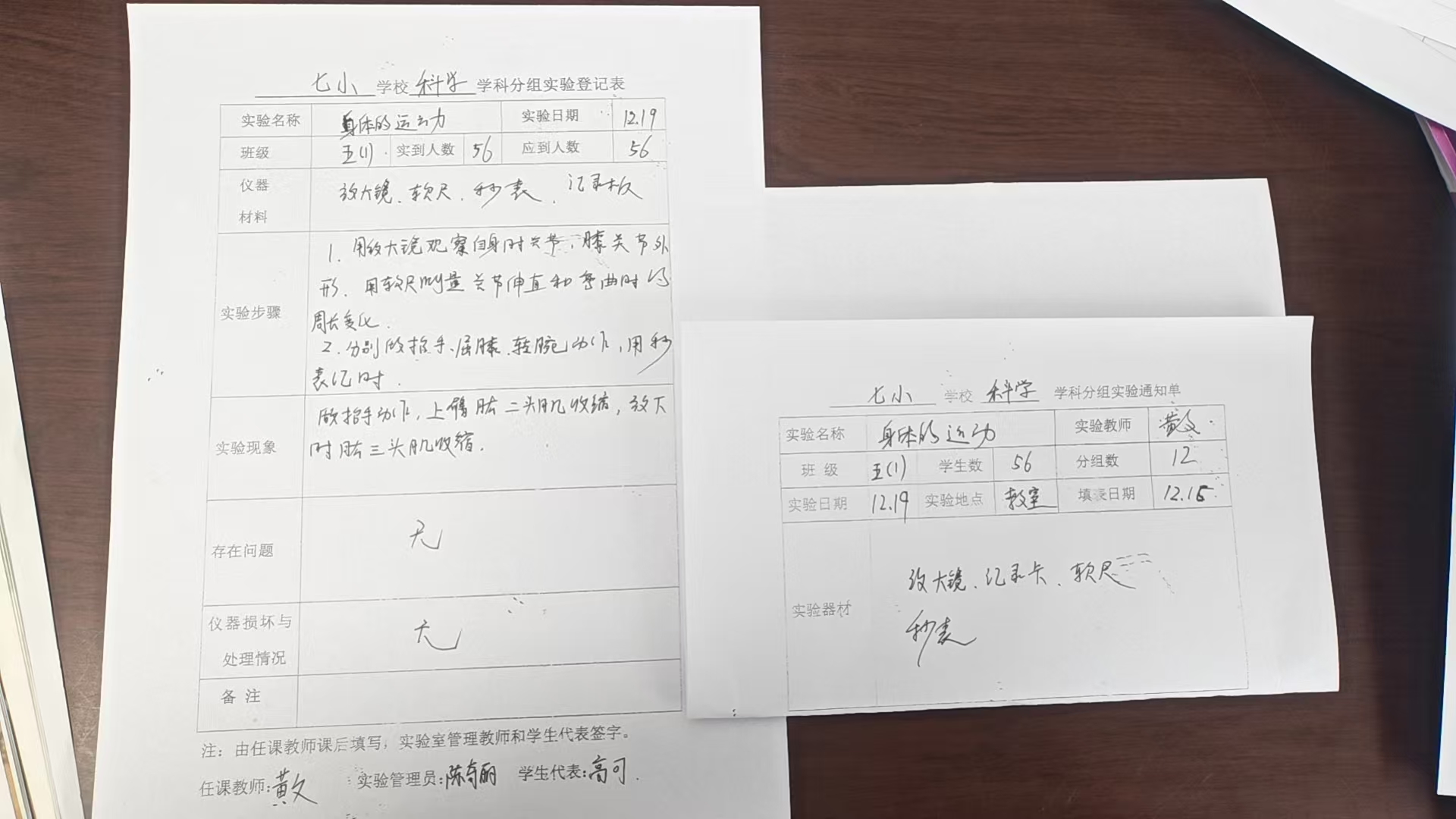 实验登记表