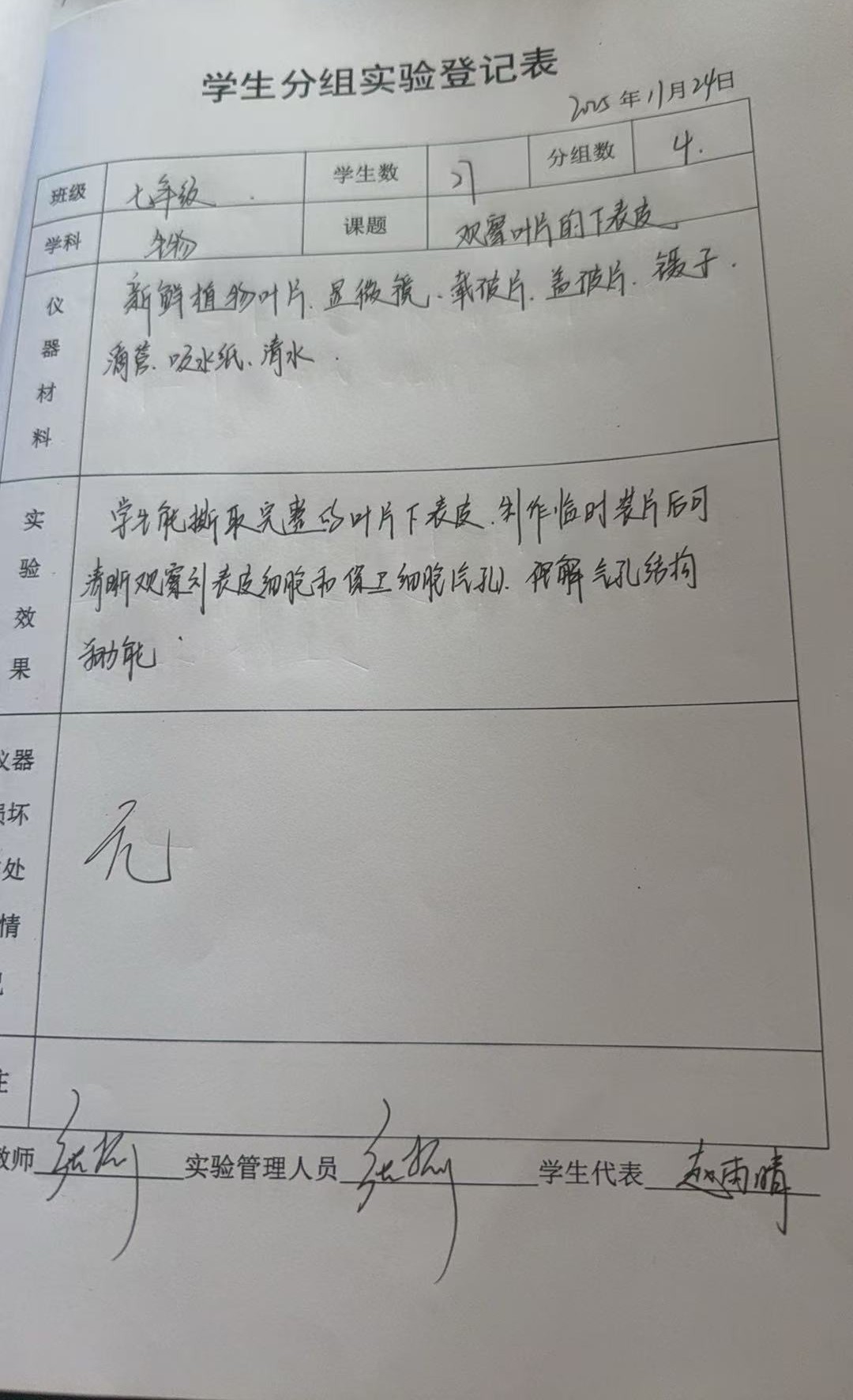实验登记表
