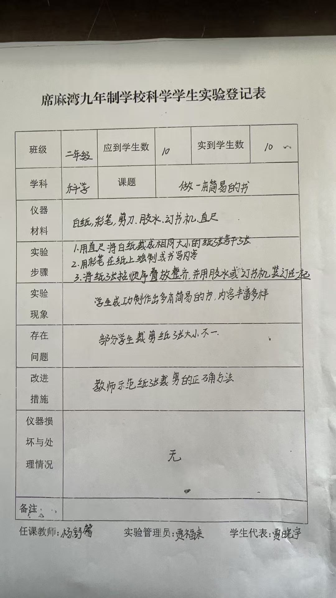实验登记表