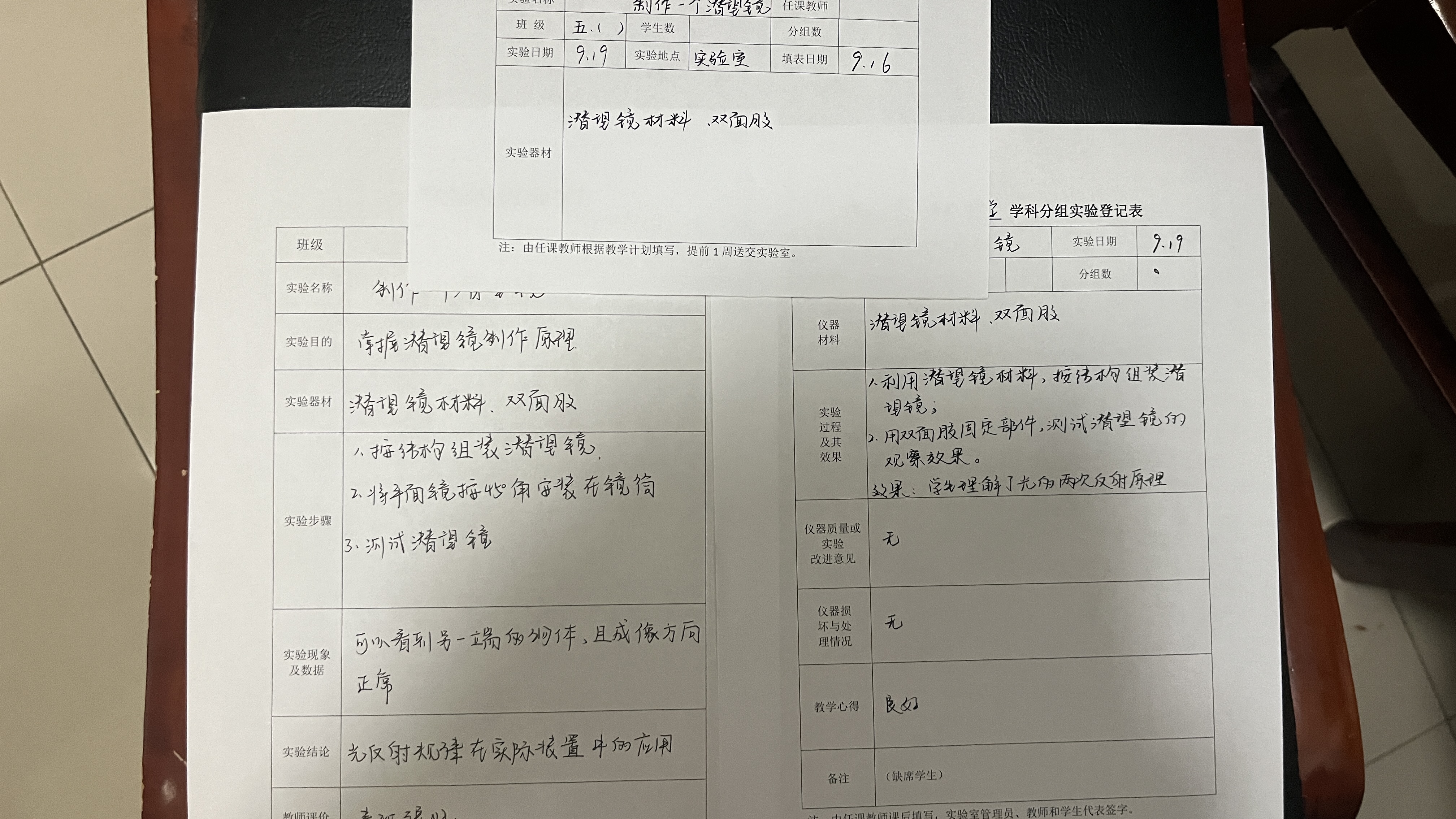 实验登记表