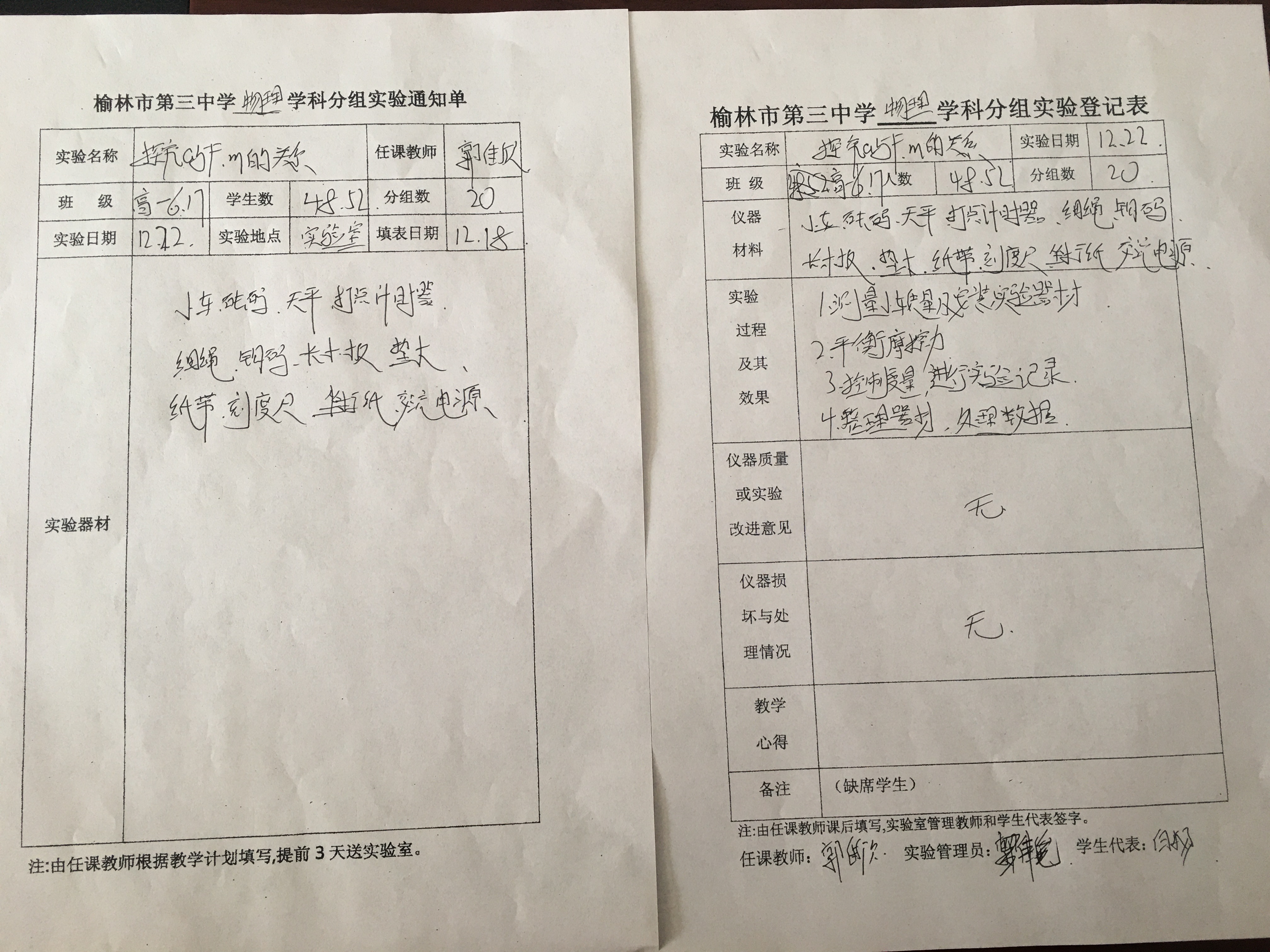 实验登记表