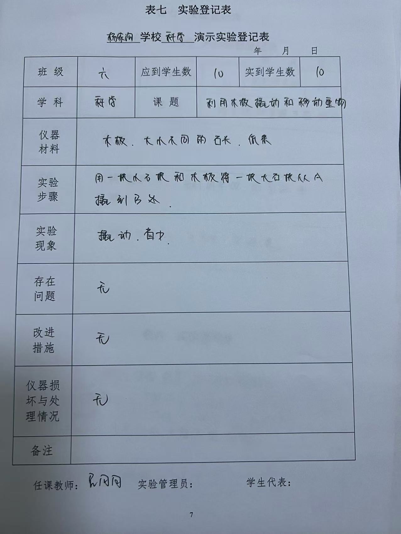 实验登记表