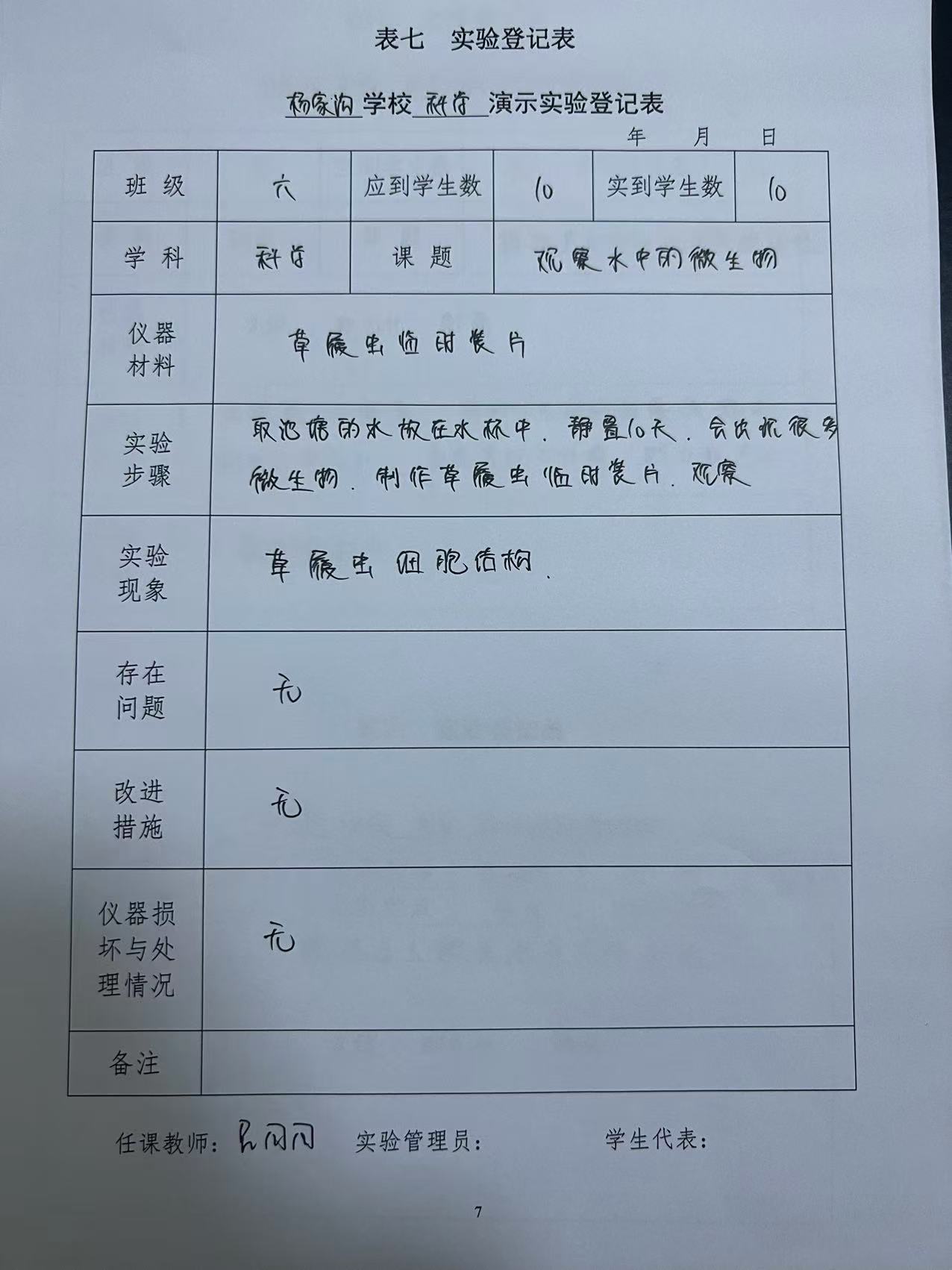 实验登记表