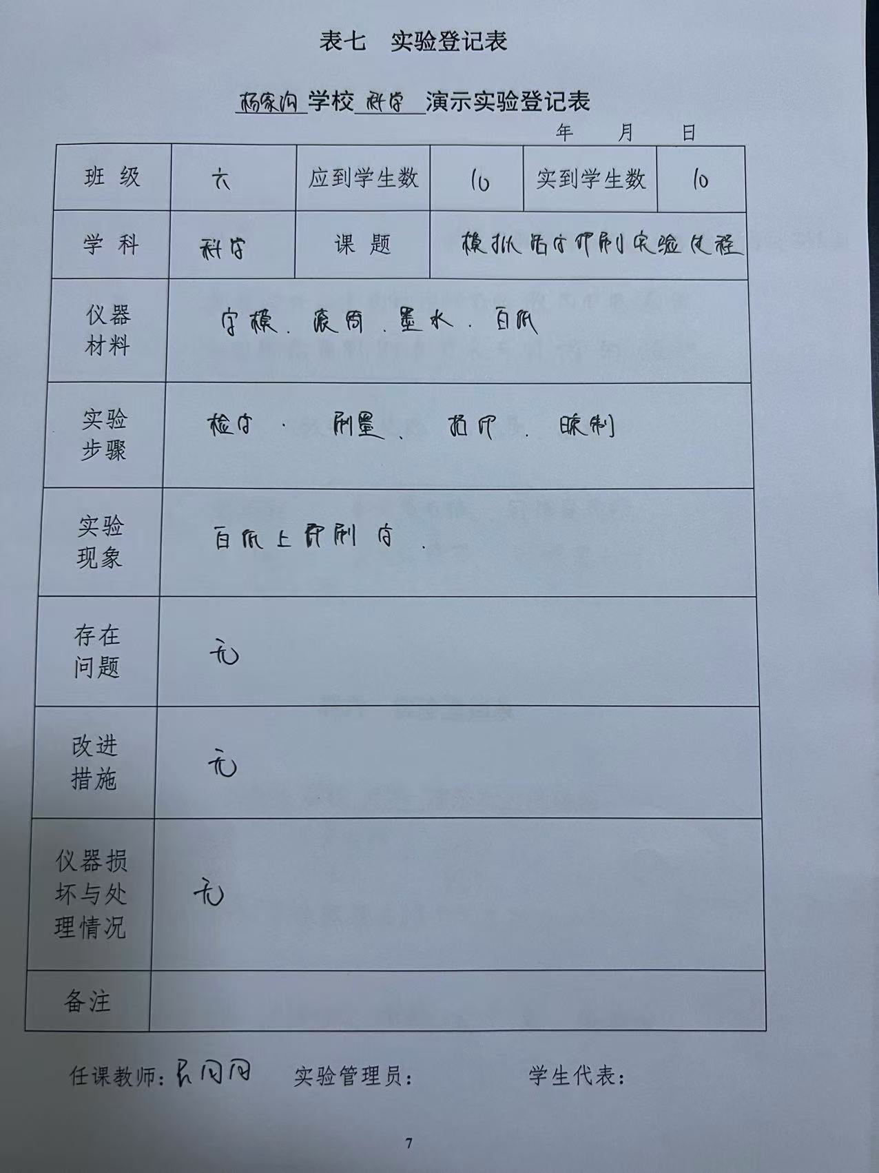 实验登记表