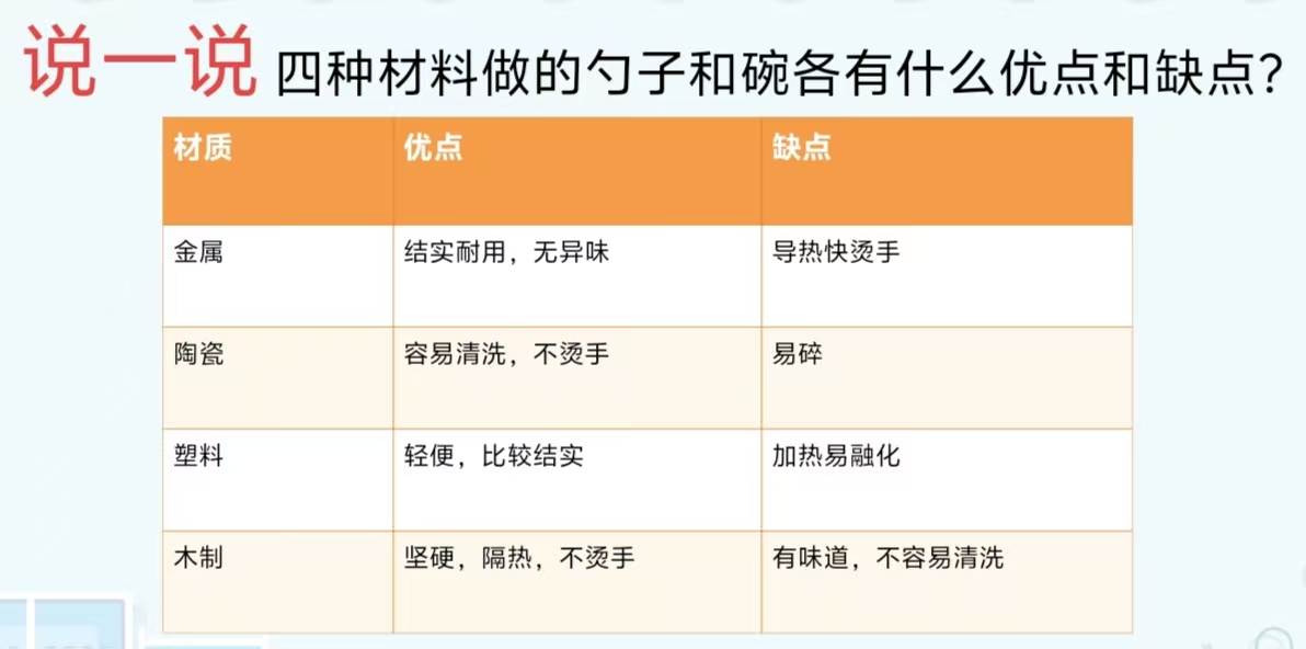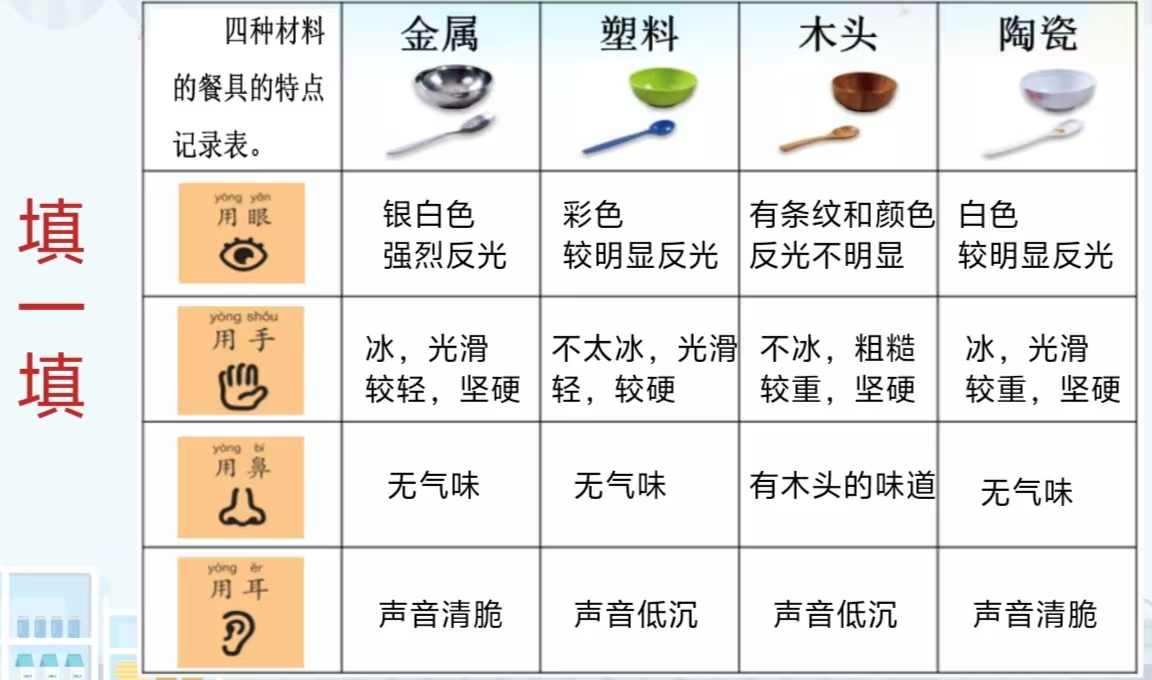 上册-第二章>第二节>不同材料的餐具