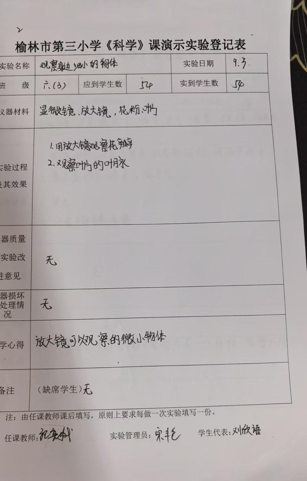 实验登记表