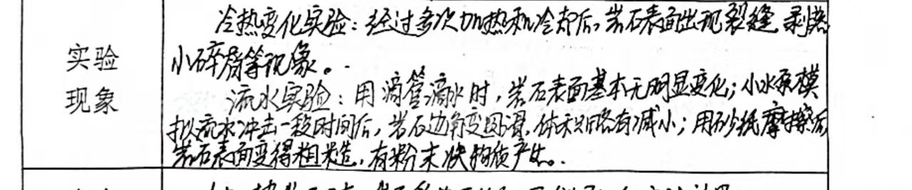 探究冷热变化、流水对岩石的影响