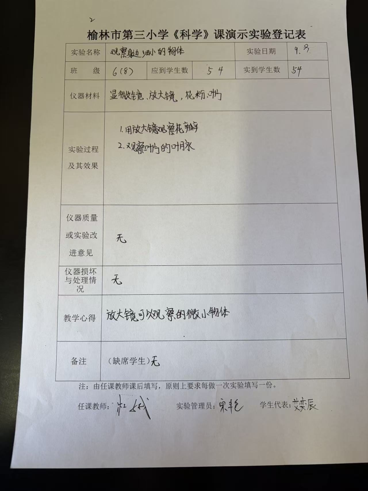 实验登记表