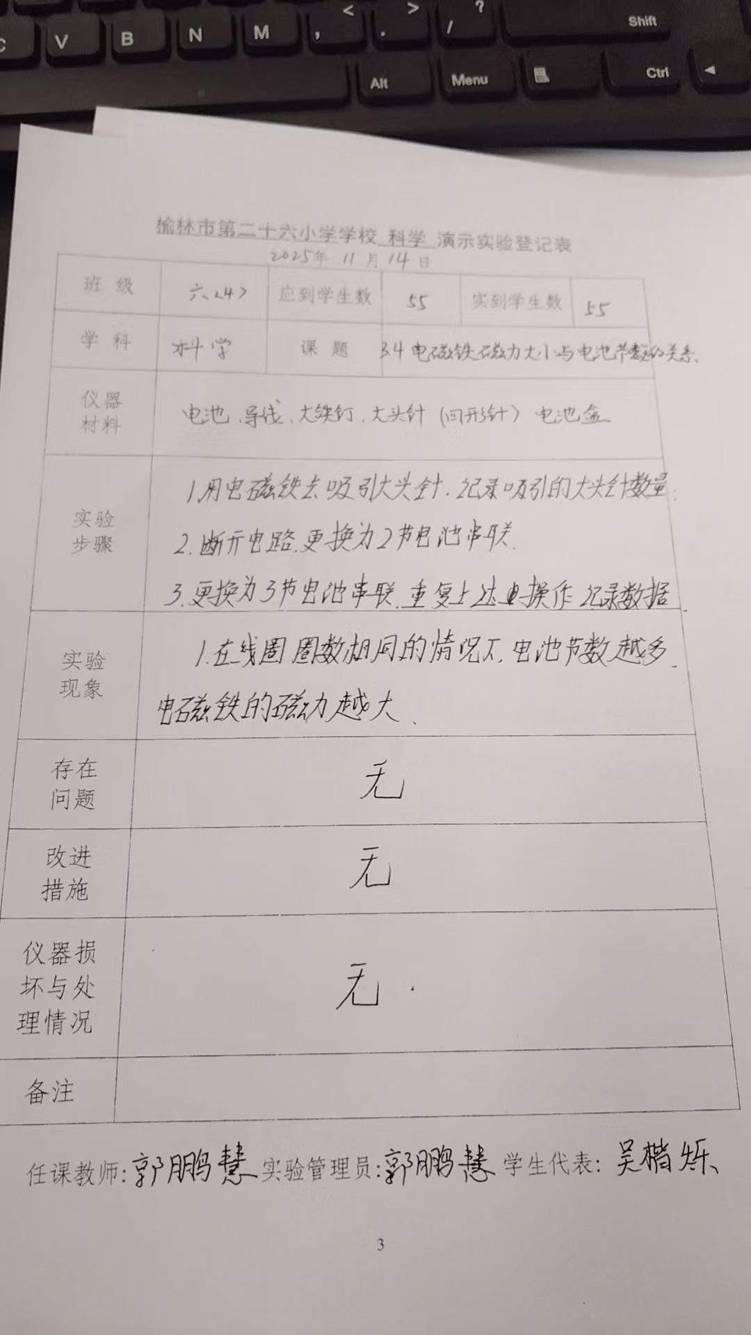 上册-第三章>第四节>3.4电磁铁磁力大小与电池节数的关系