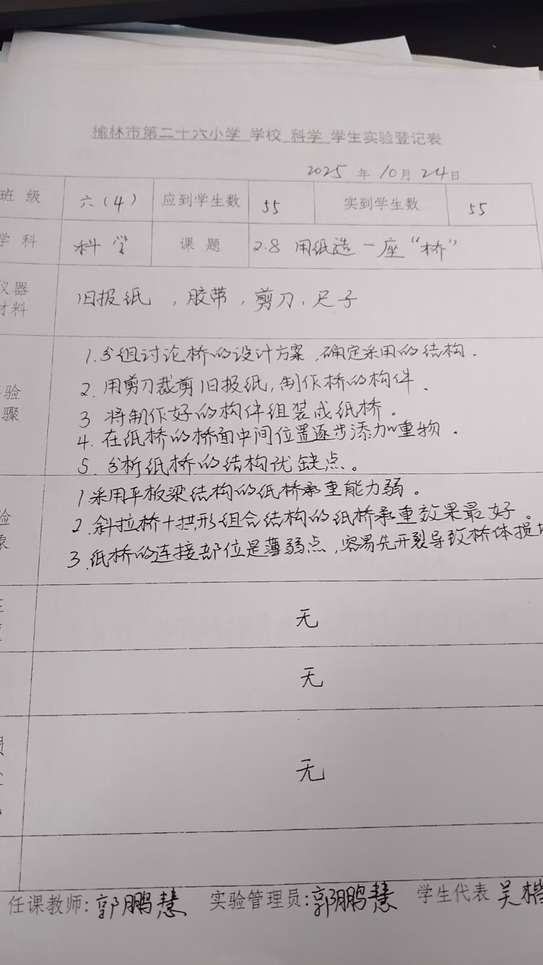 实验登记表