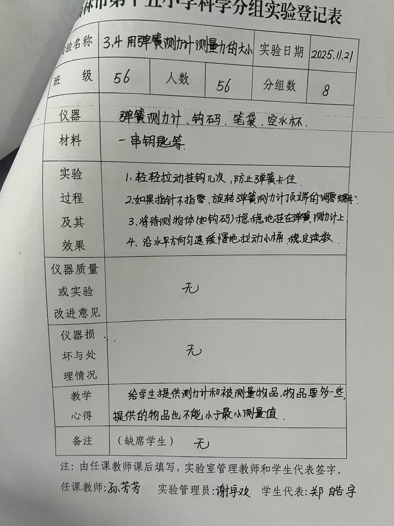 实验登记表