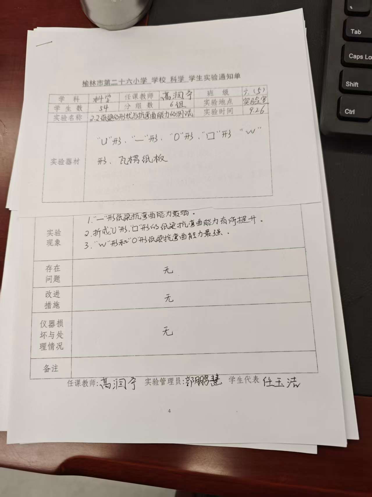 纸粱的形状与抗弯曲能力的测试