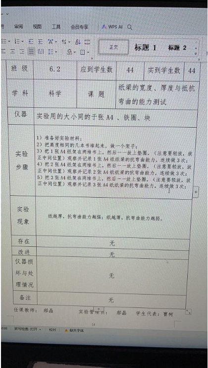 2.1纸梁的宽度、厚度与抵抗弯曲的能力测试