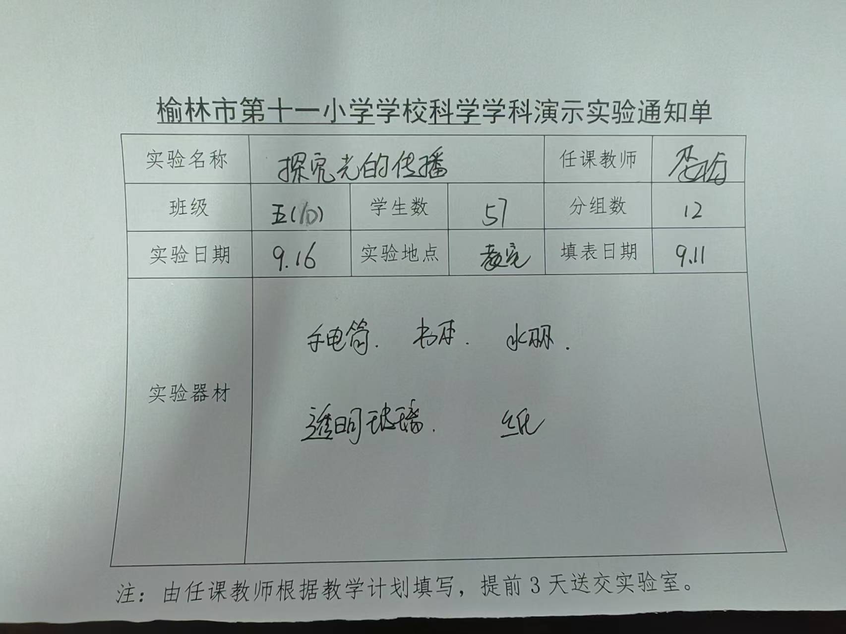 实验登记表