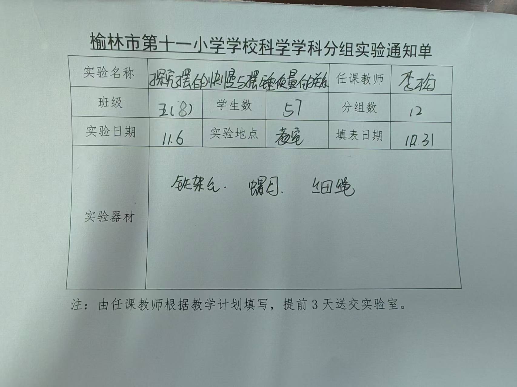实验登记表