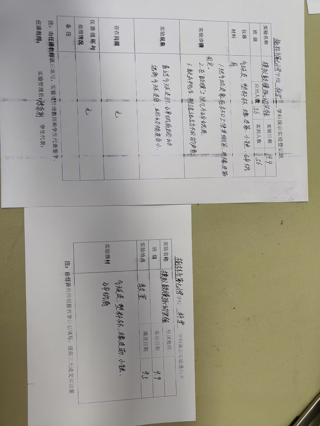 实验登记表