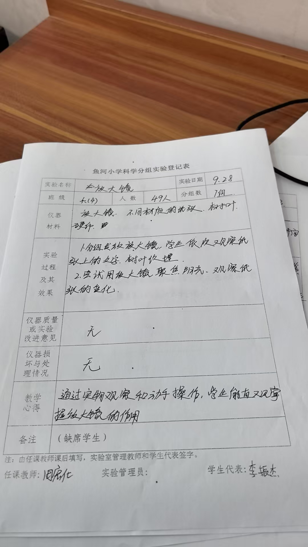 实验登记表