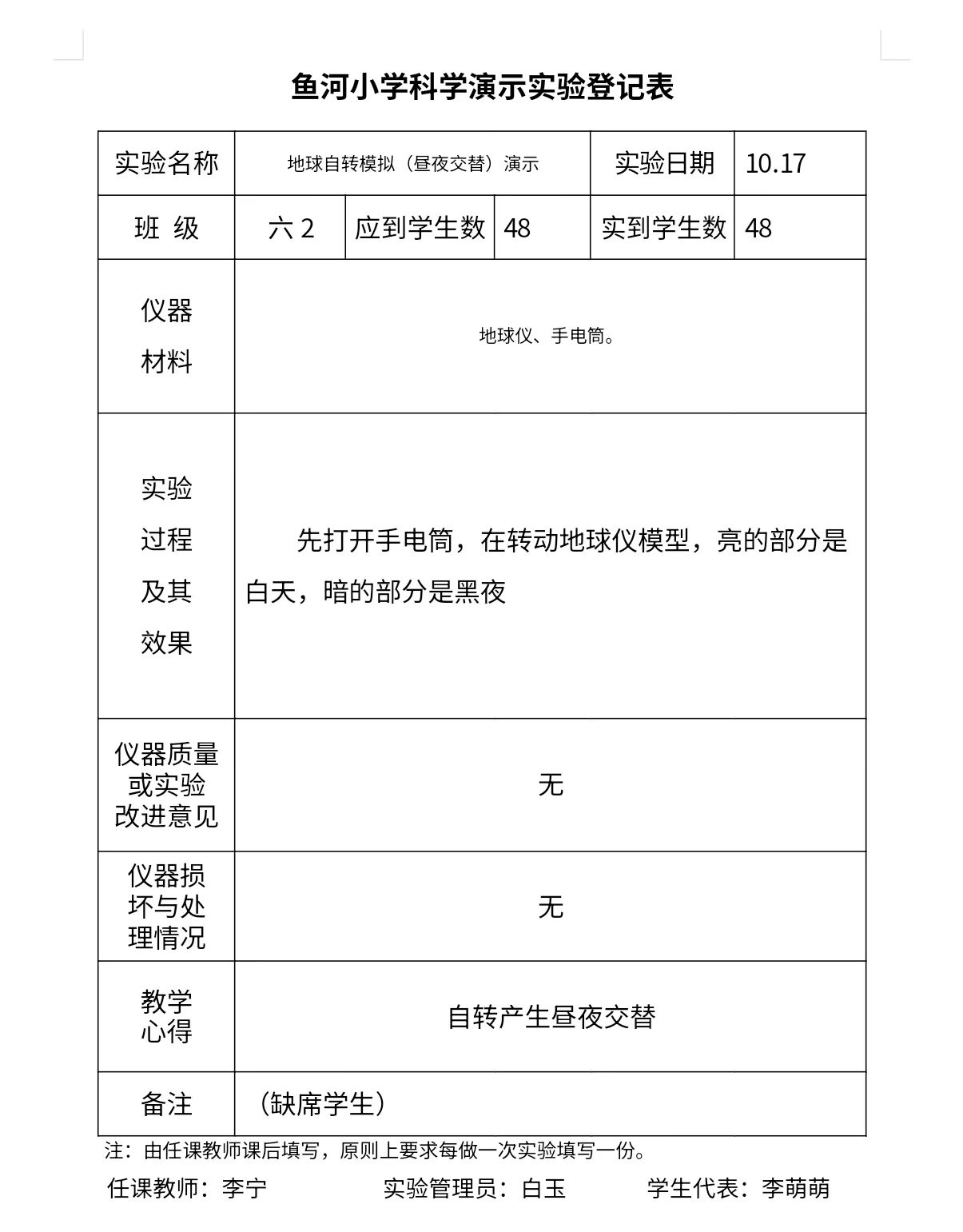 实验登记表