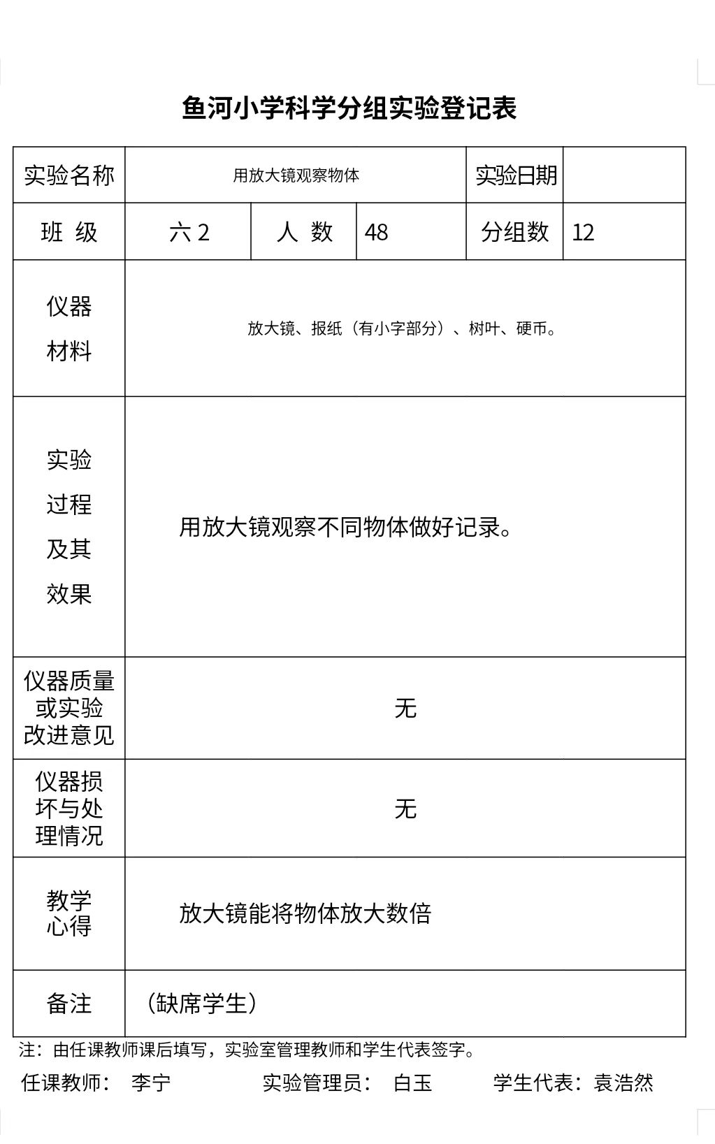 实验登记表