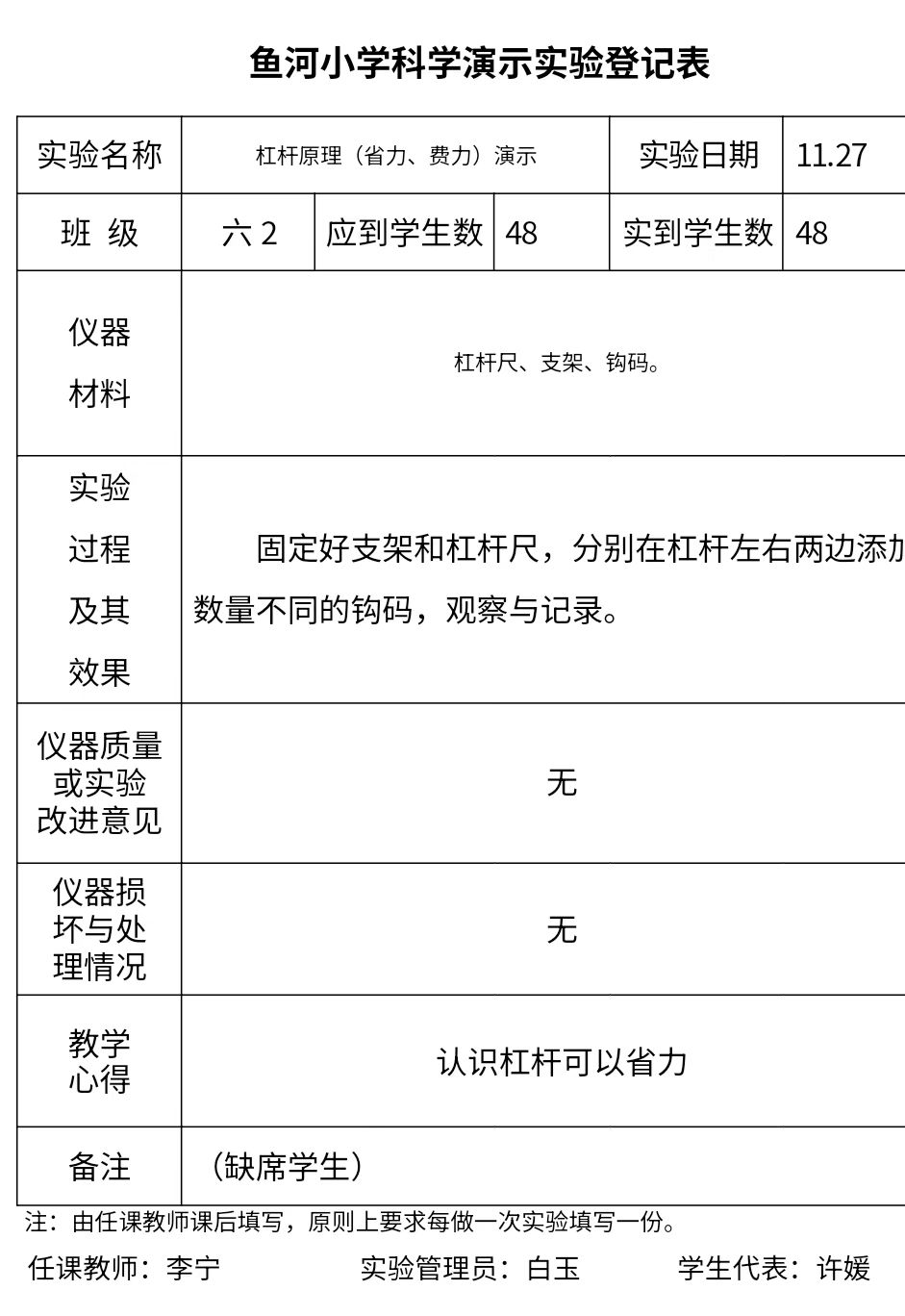 实验登记表
