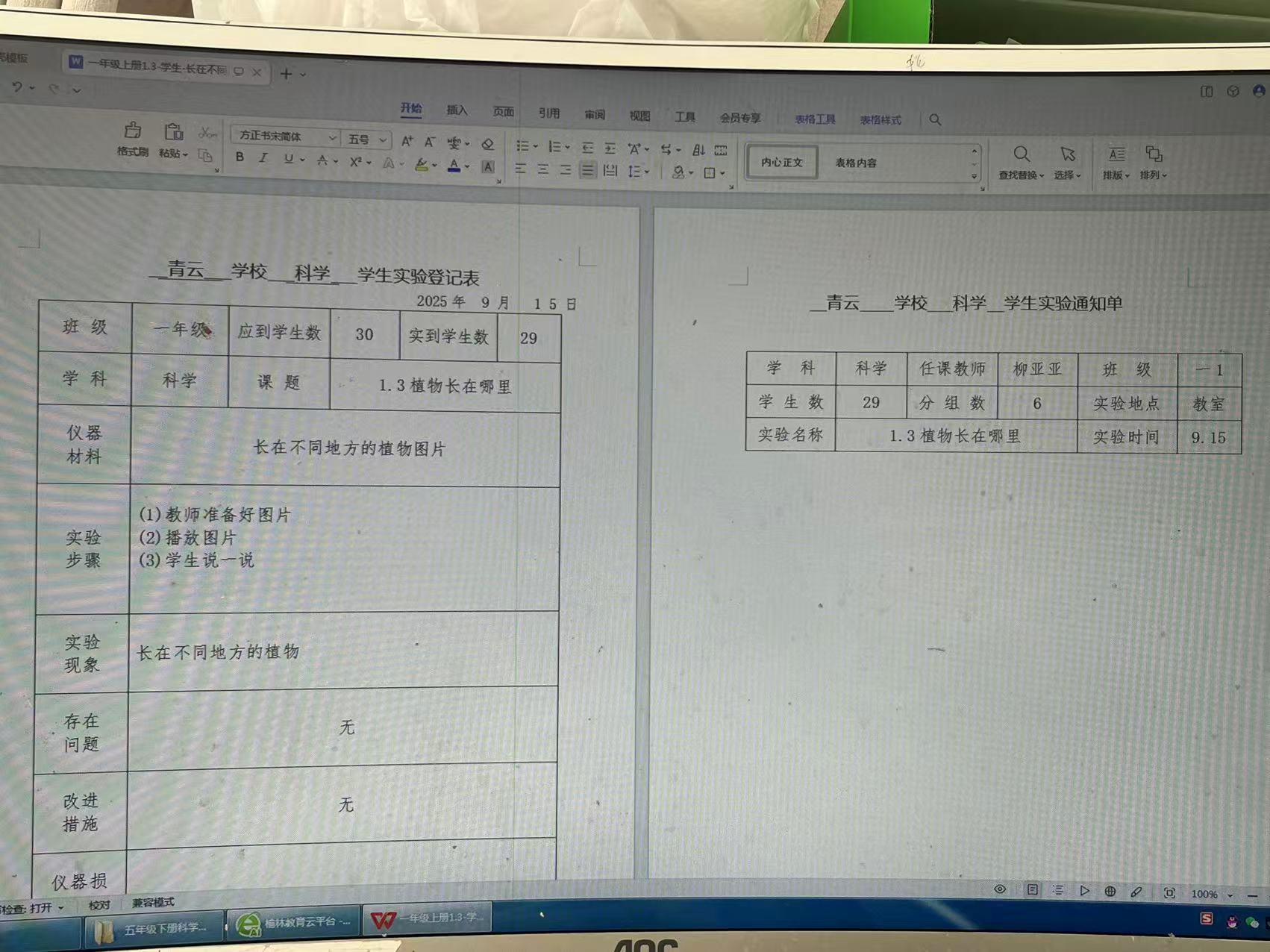 实验登记表