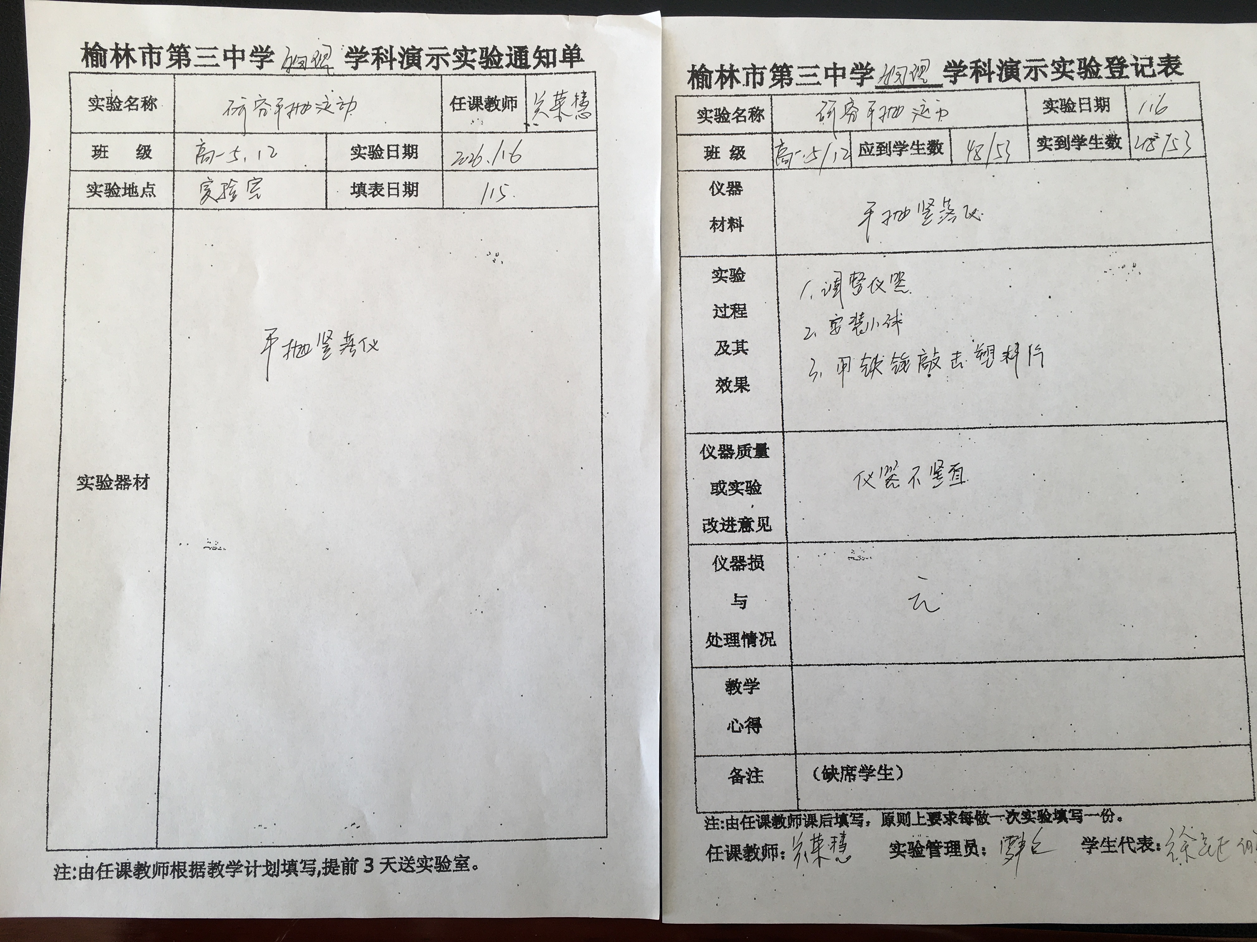 实验登记表