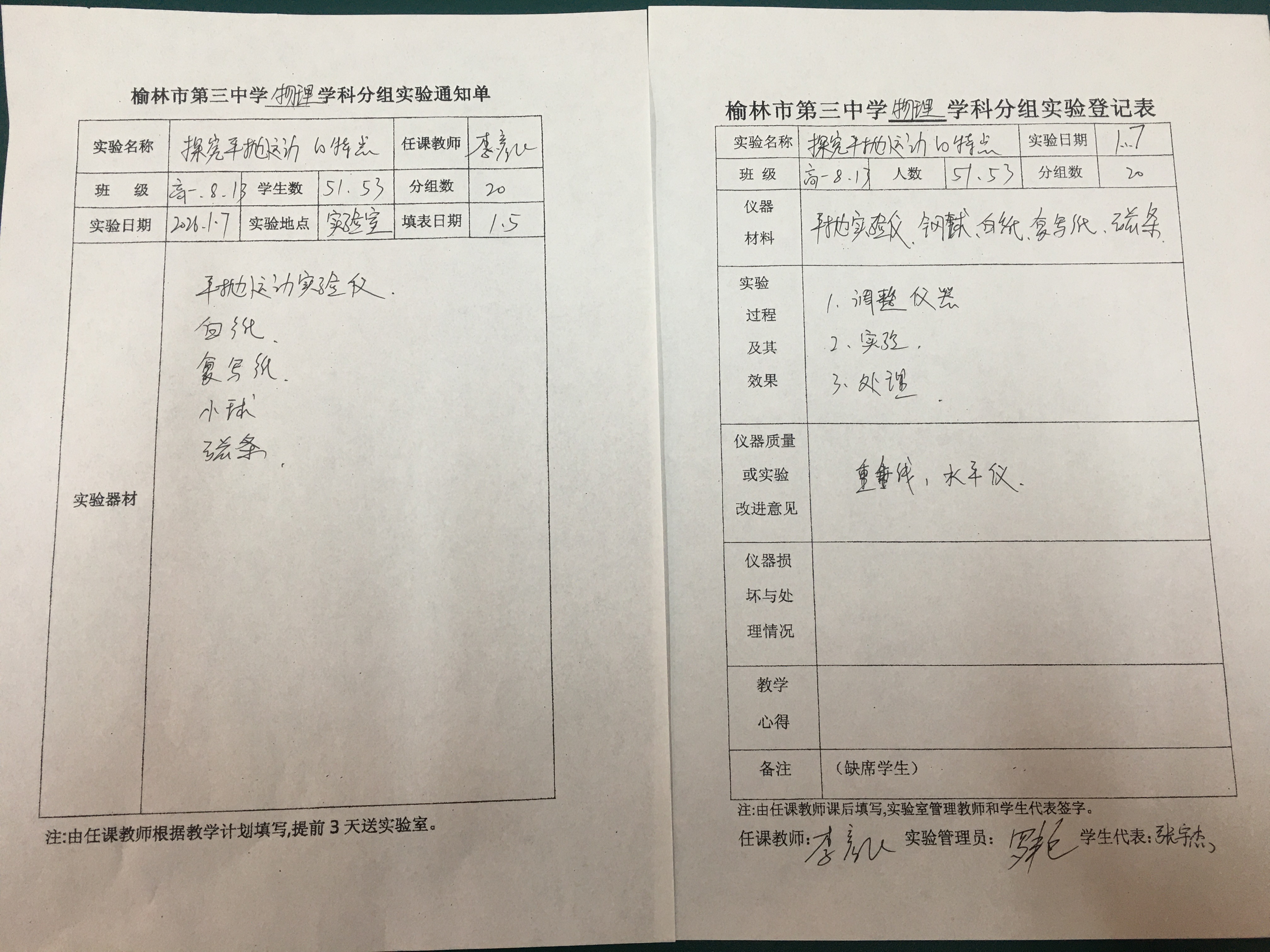 实验登记表