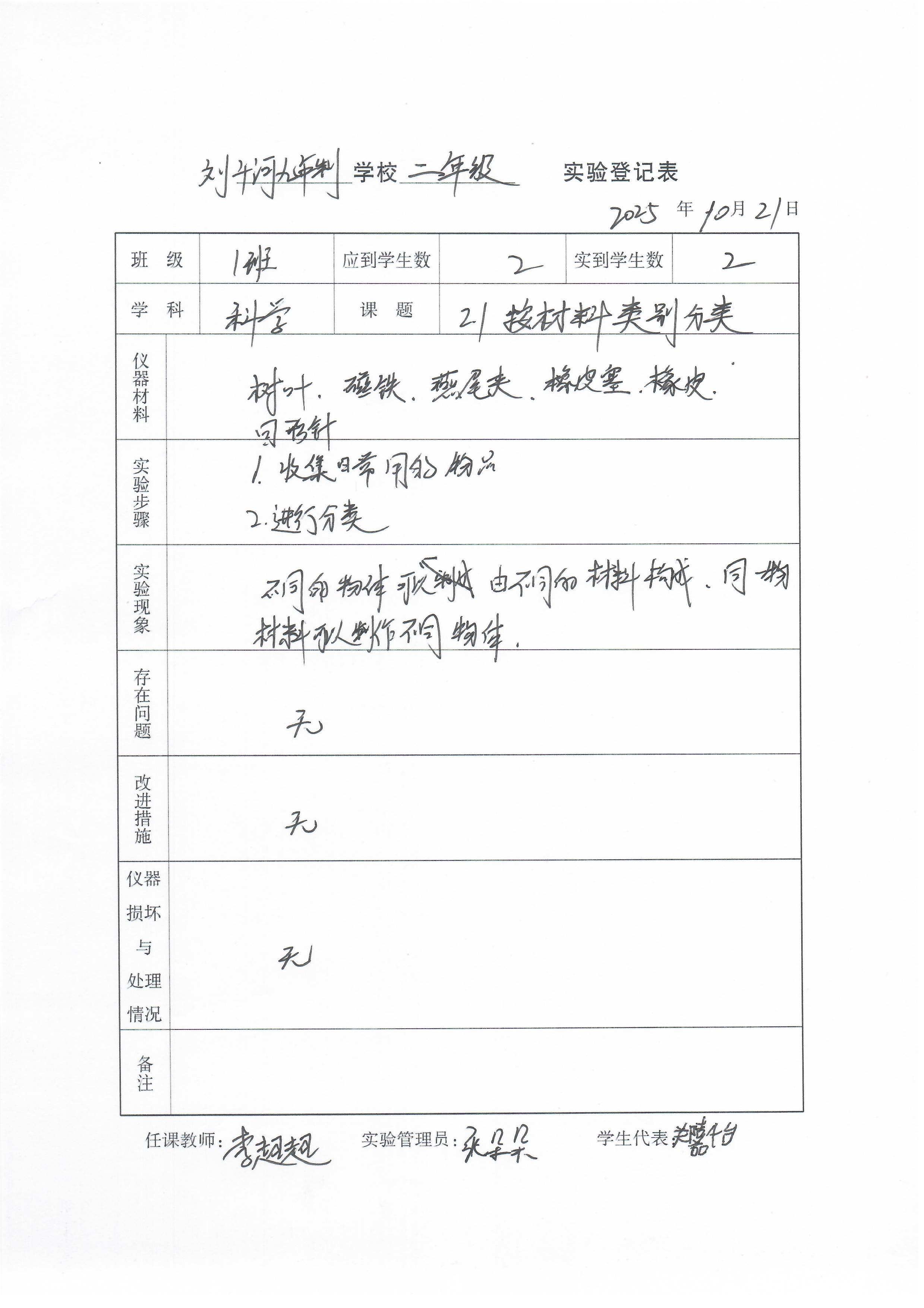 实验登记表