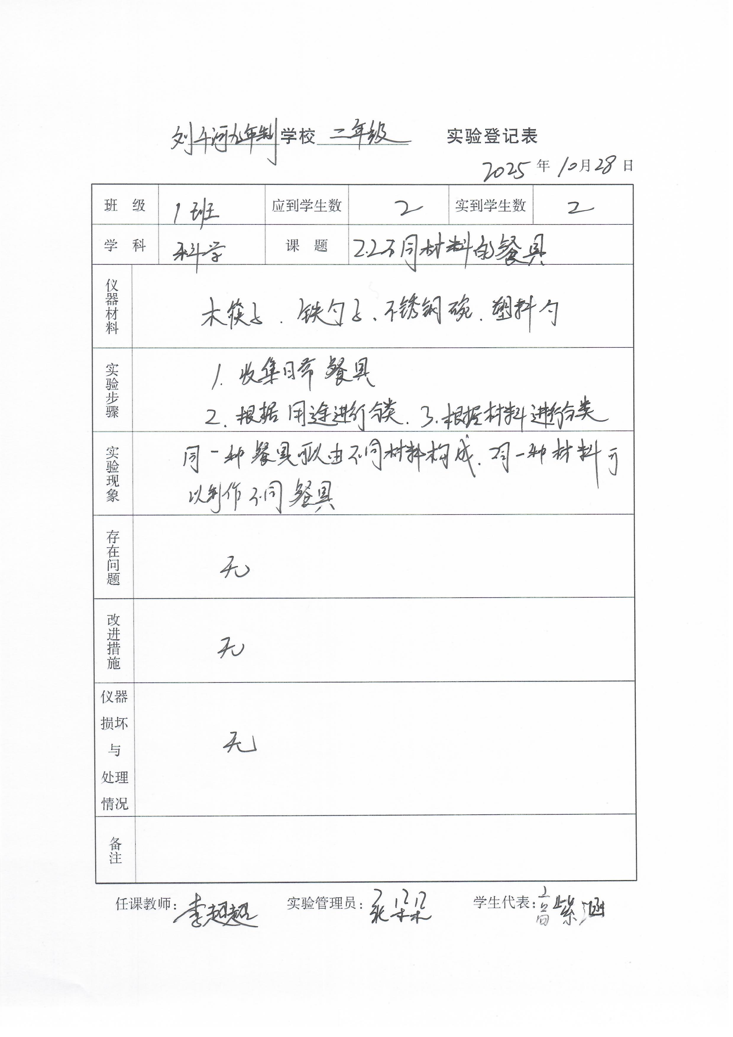实验登记表