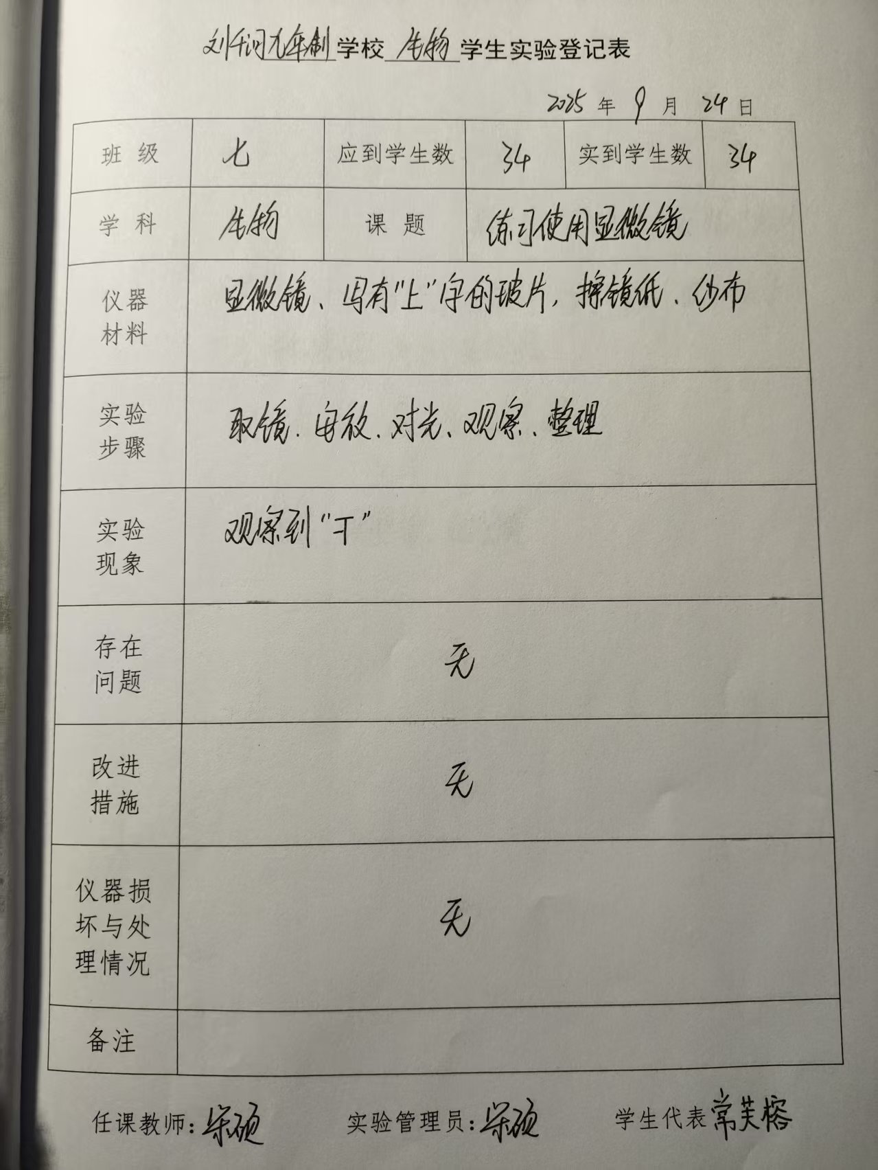 实验登记表