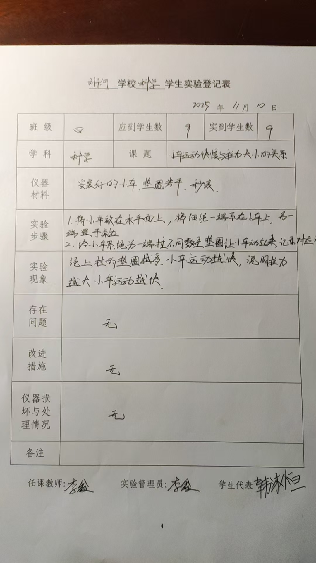 实验登记表