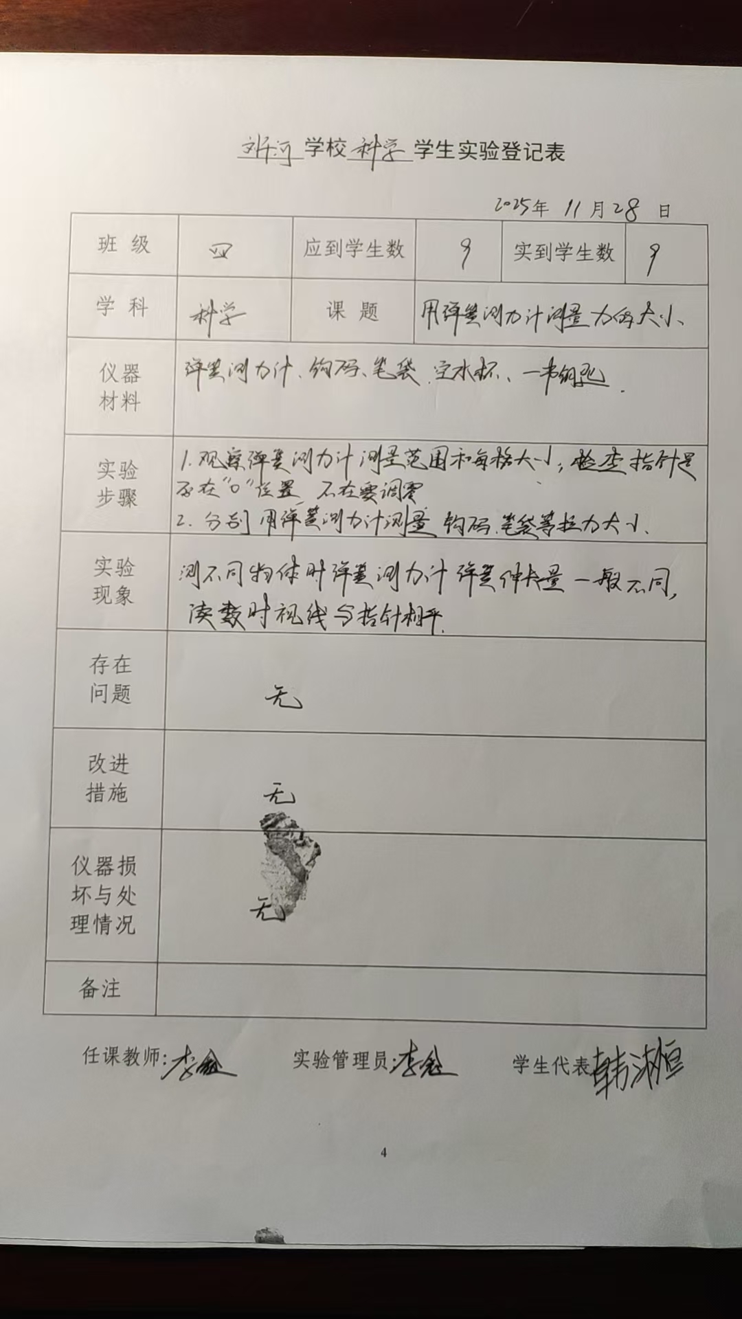 实验登记表