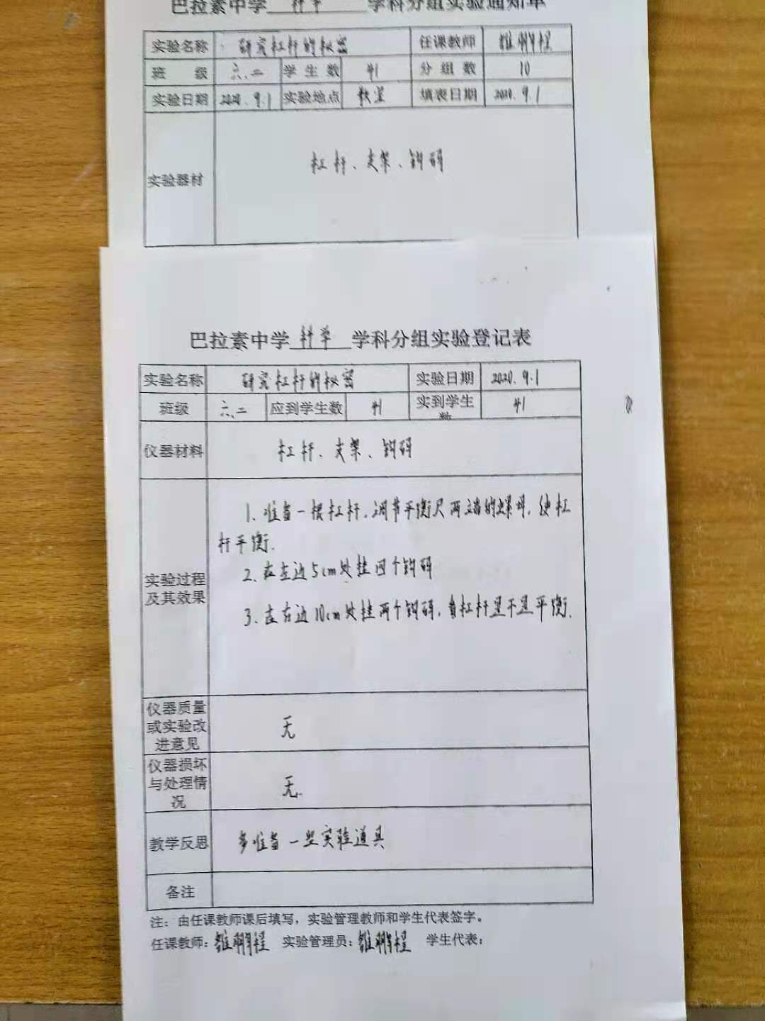 实验登记表