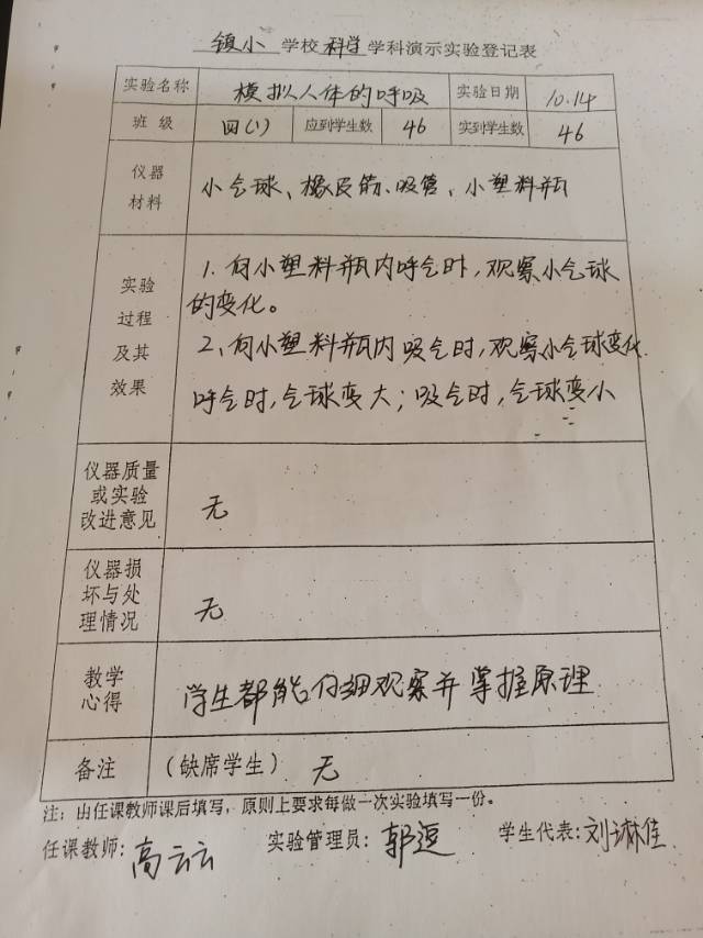 实验登记表