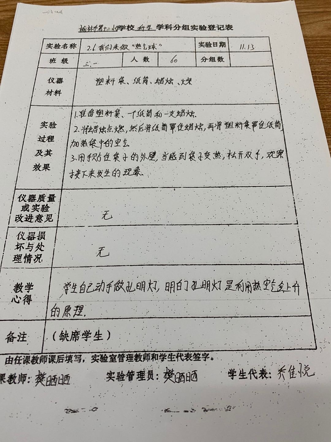 实验登记表