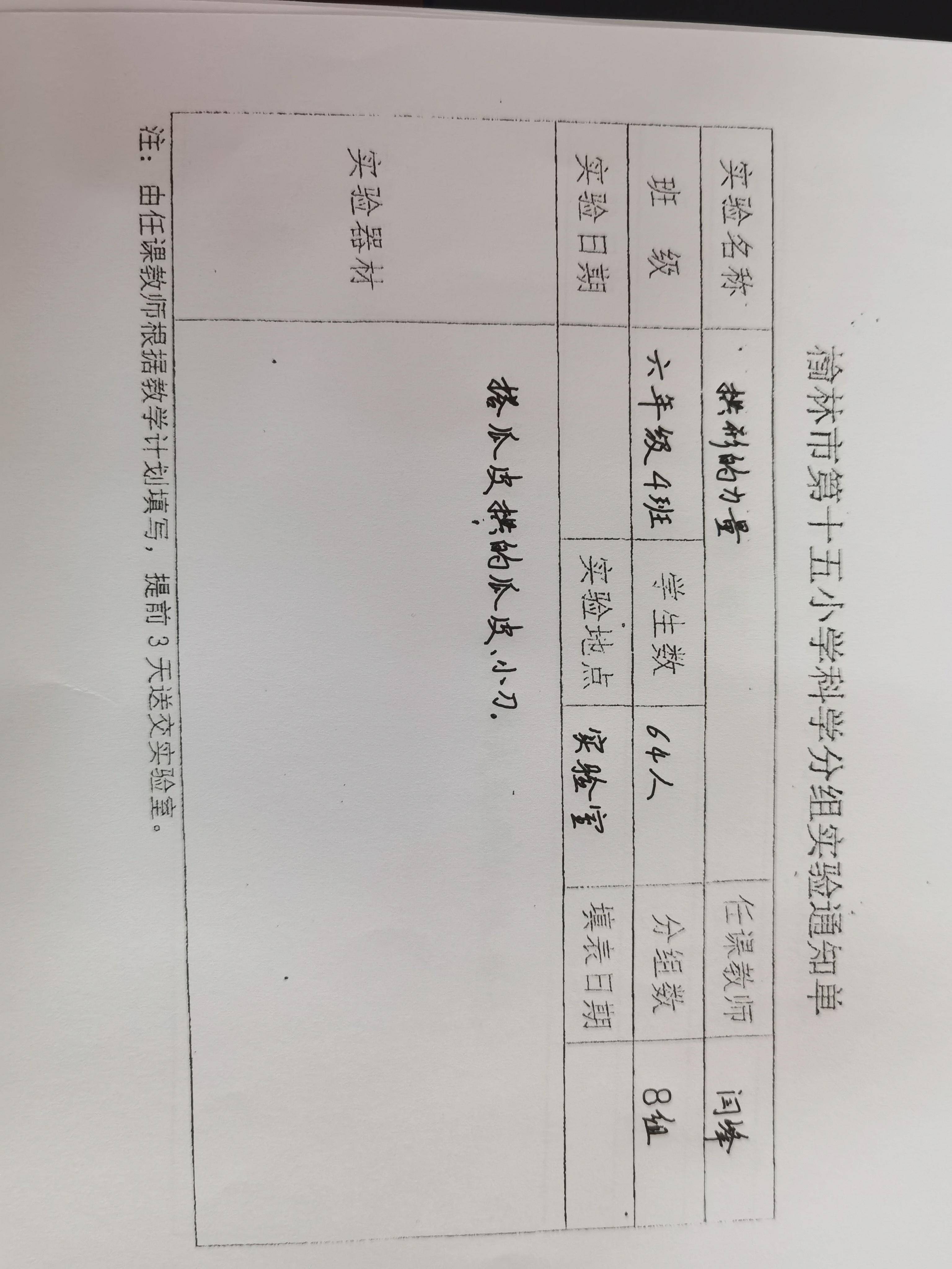 实验登记表