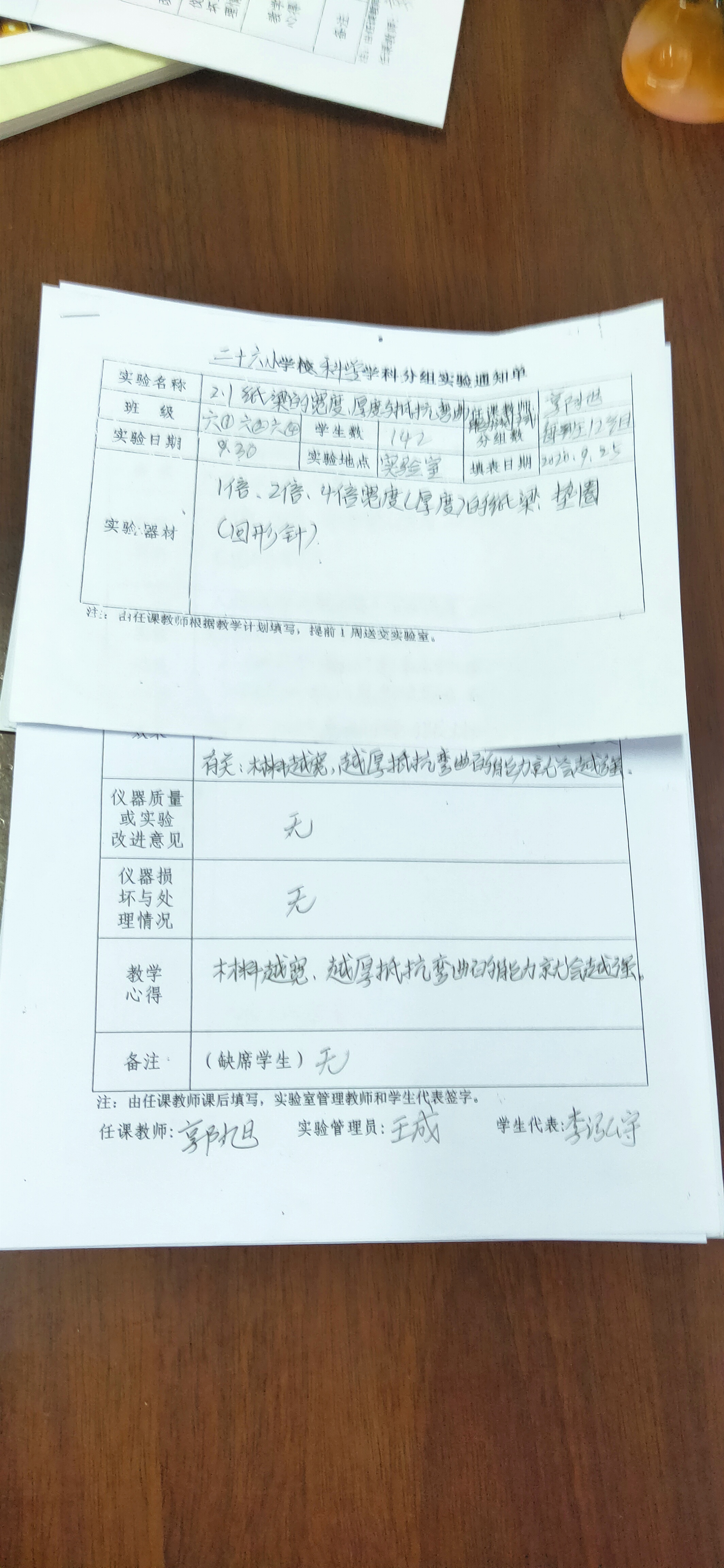 实验登记表