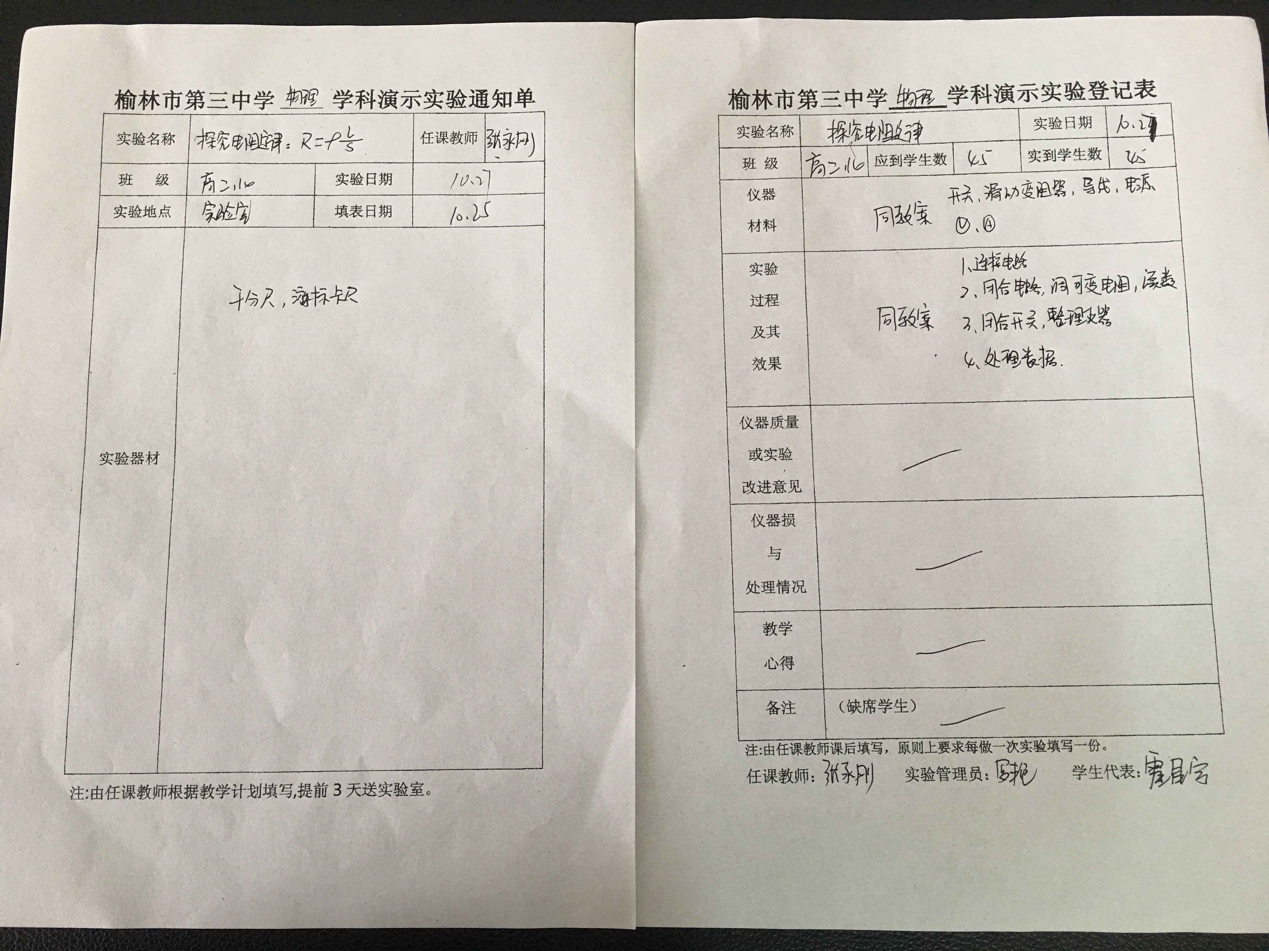 实验登记表