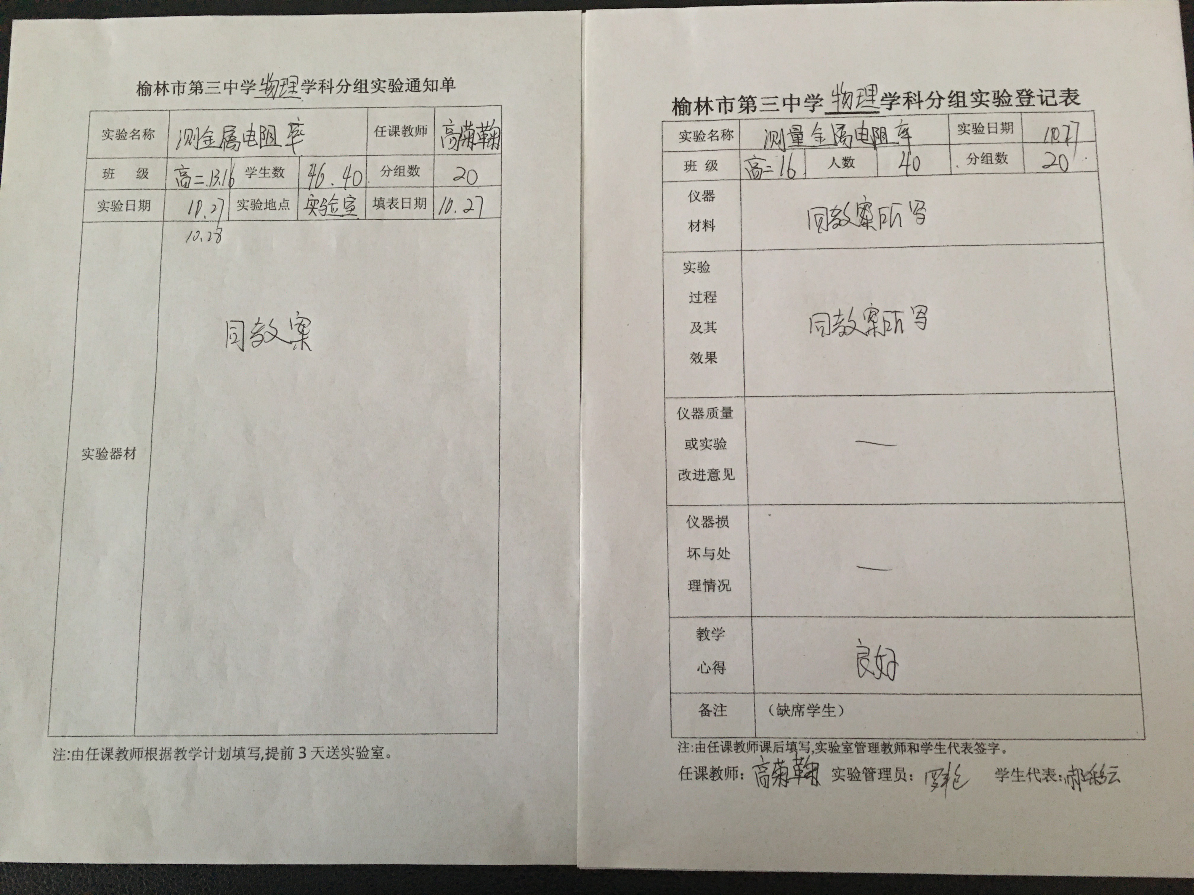 实验登记表