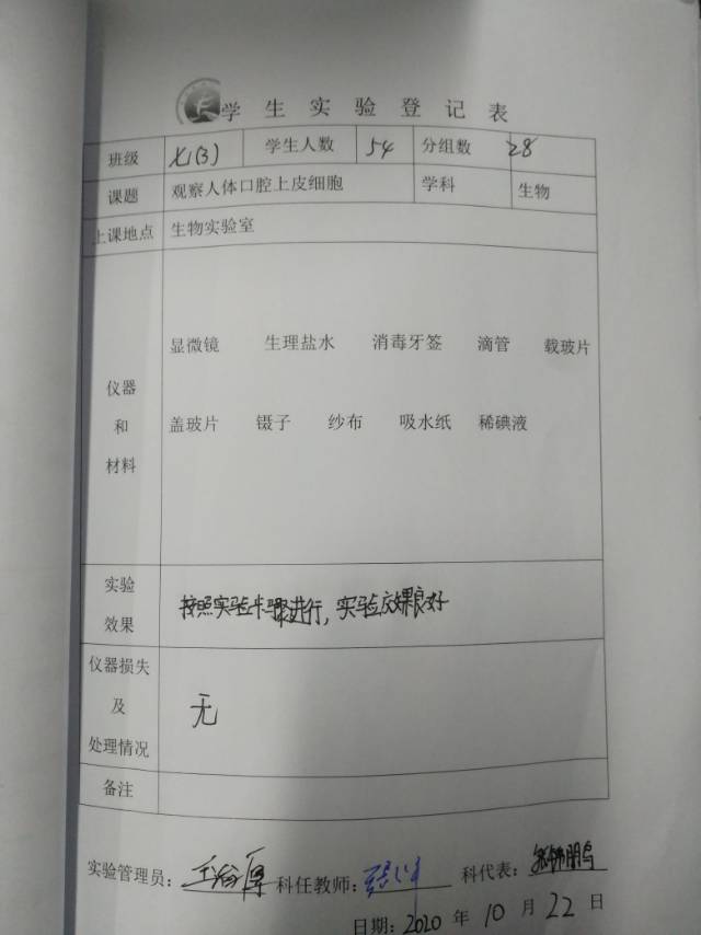 实验登记表
