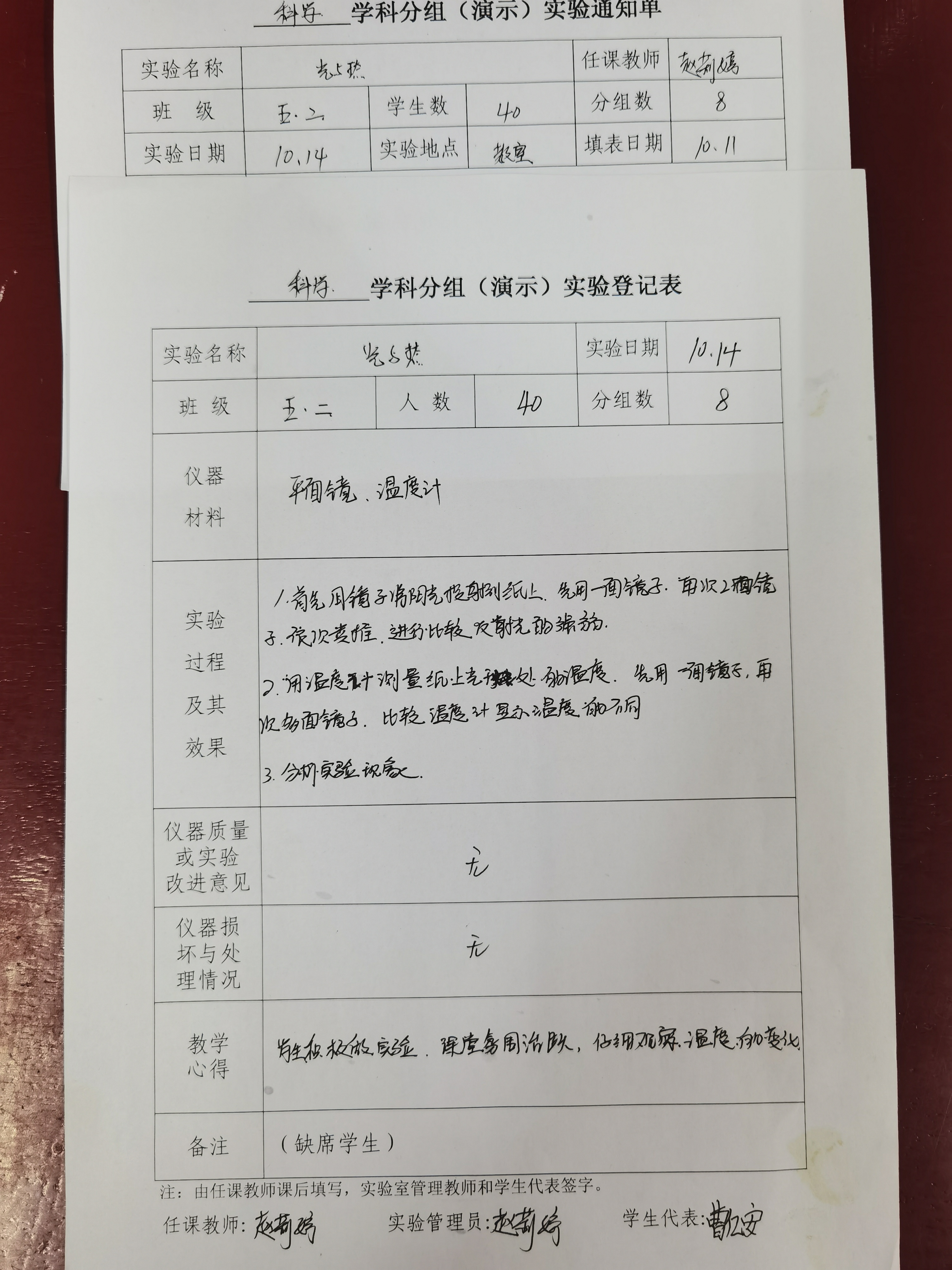 实验登记表