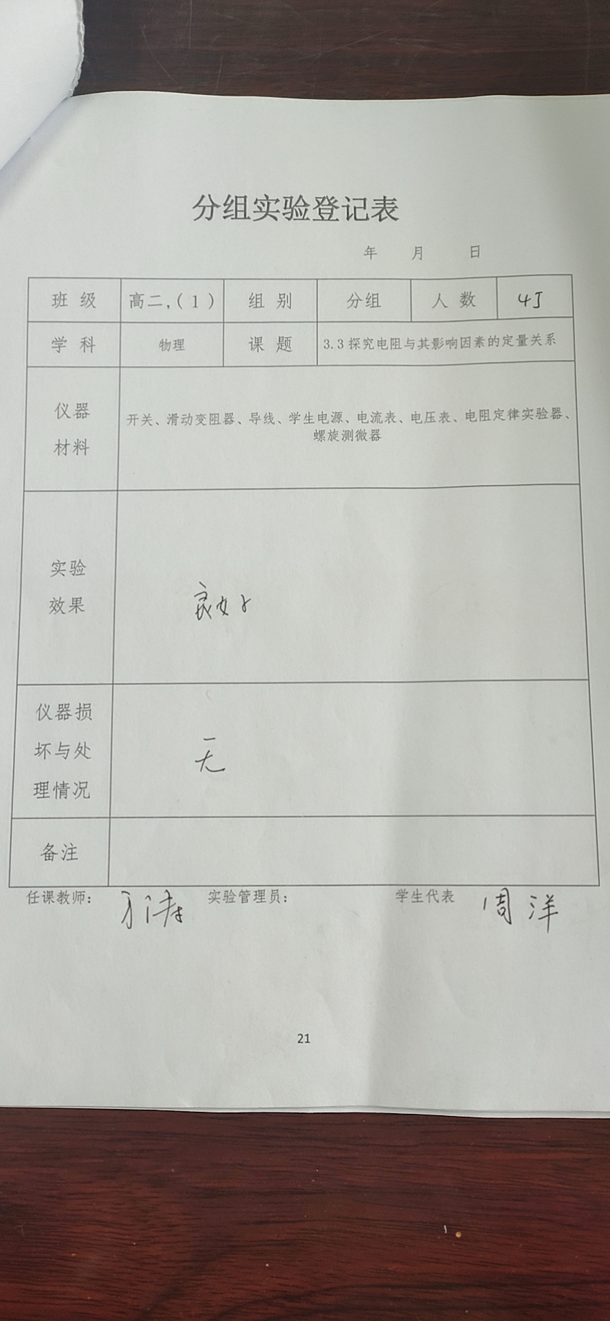 实验登记表