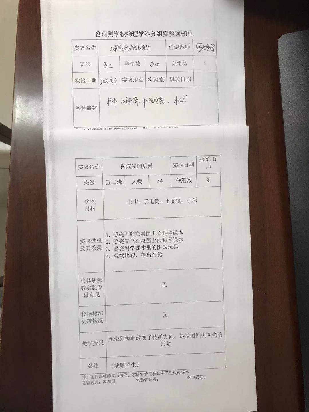 实验登记表