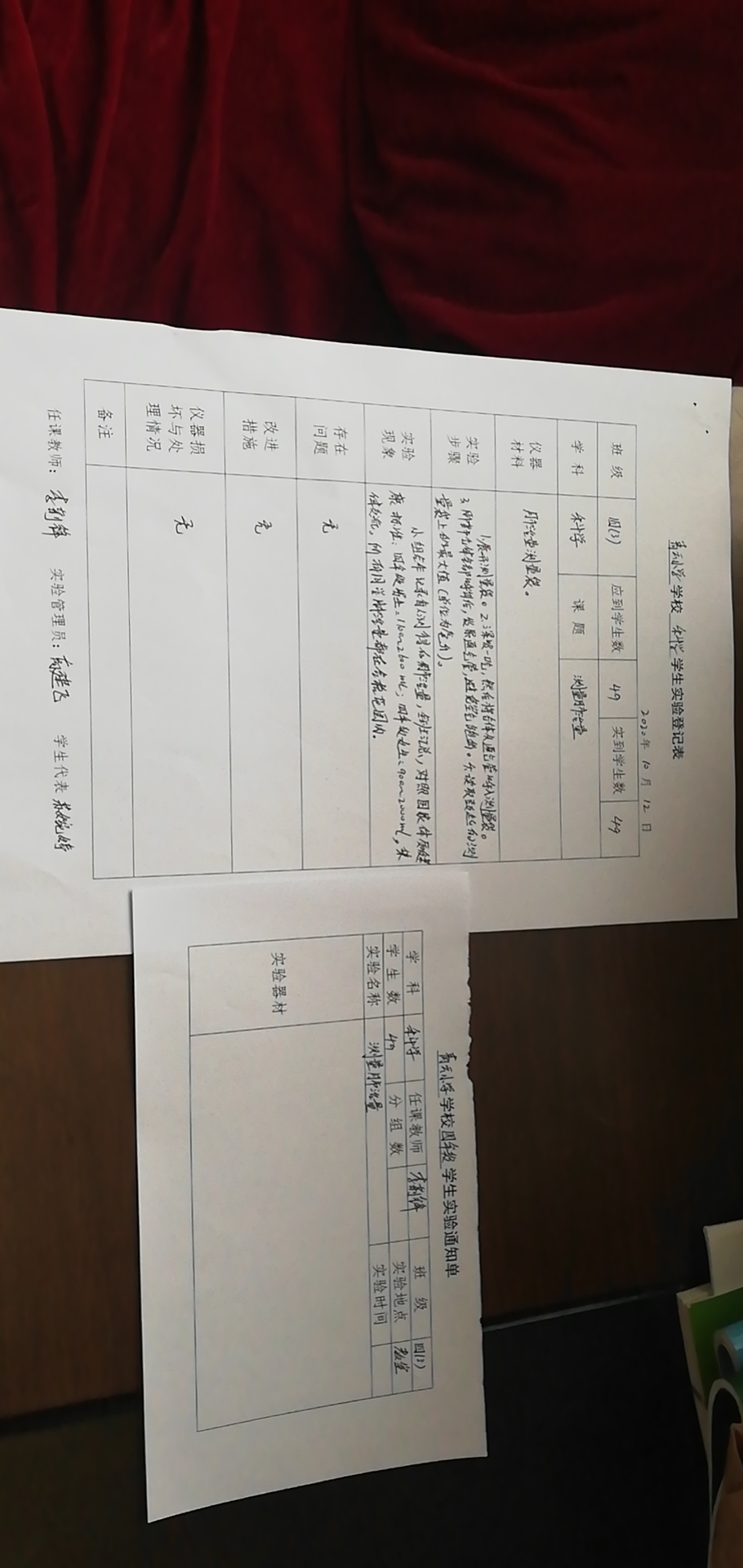 实验登记表