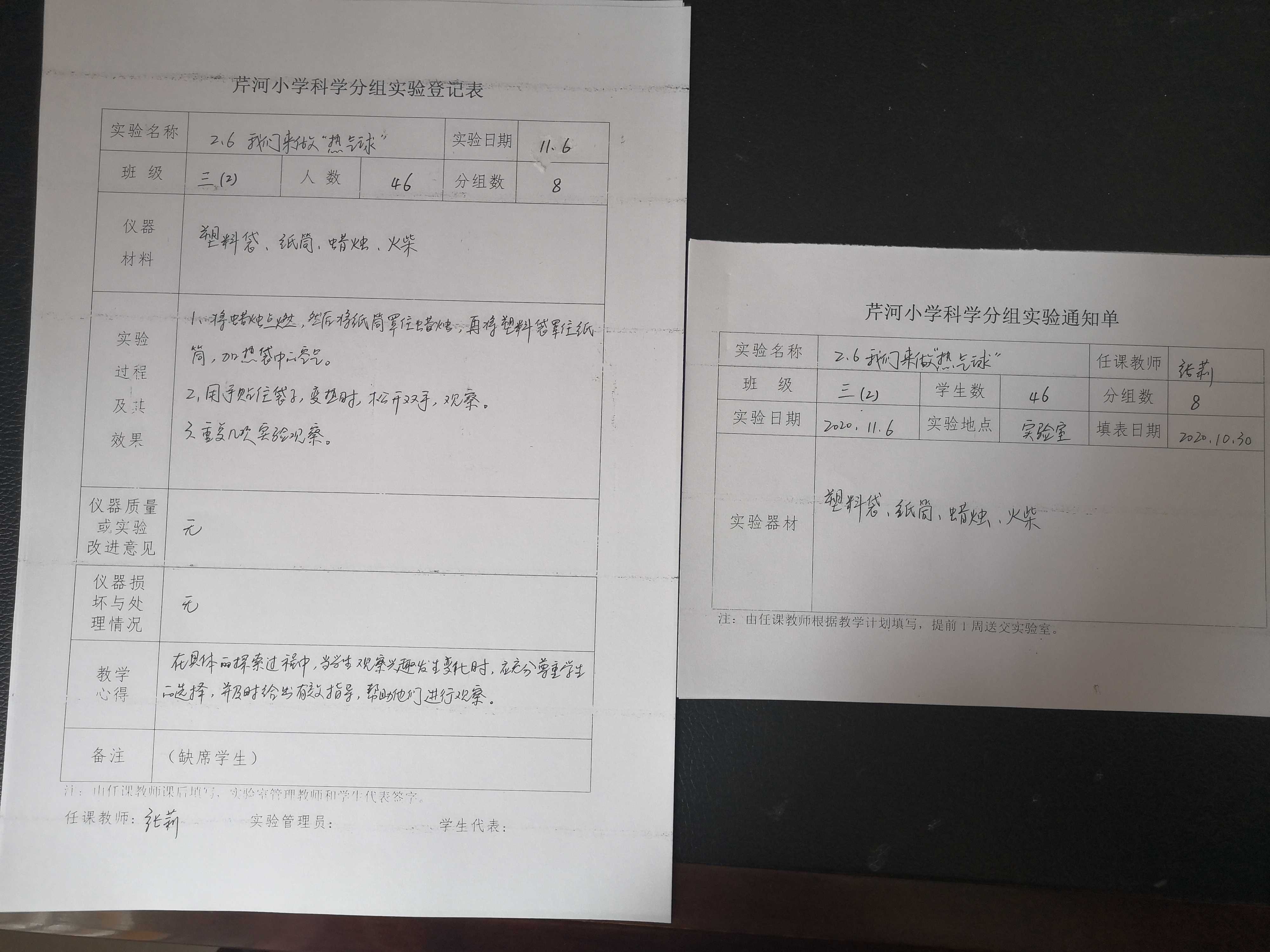实验登记表