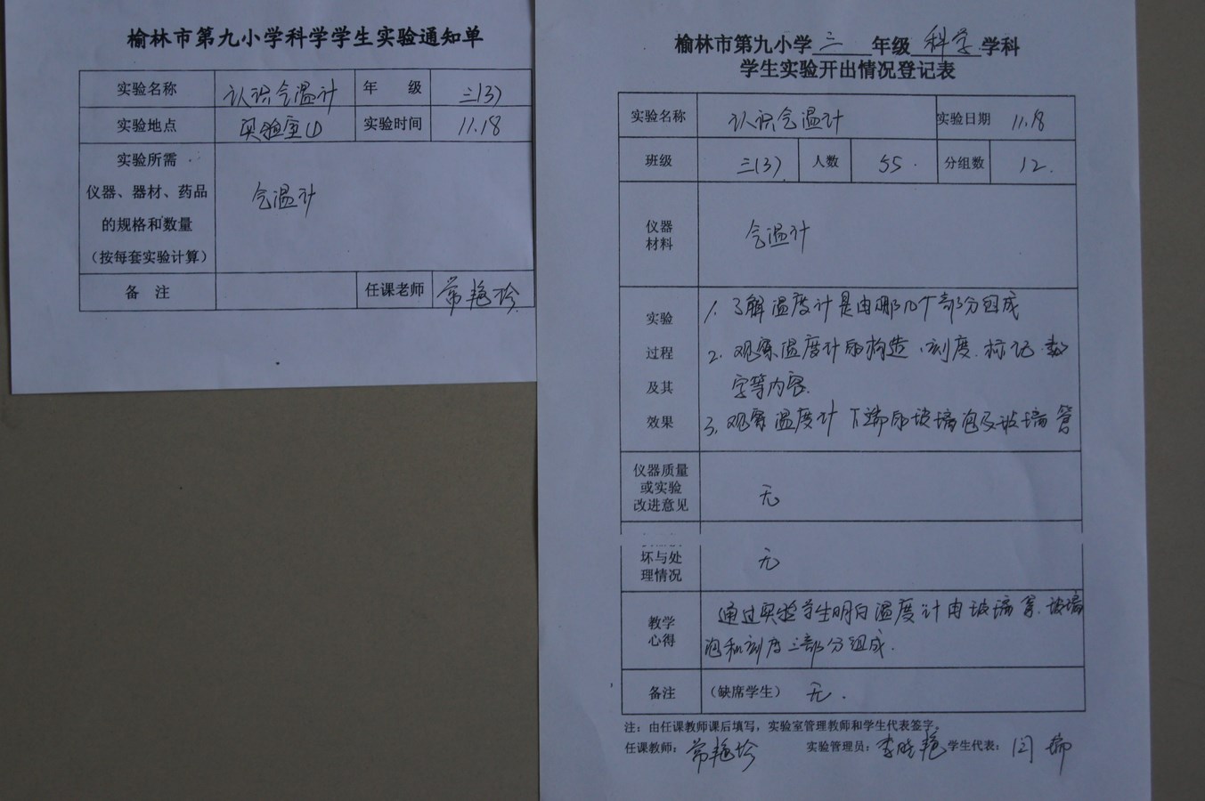 实验登记表