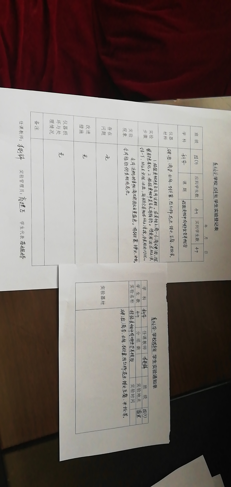 实验登记表